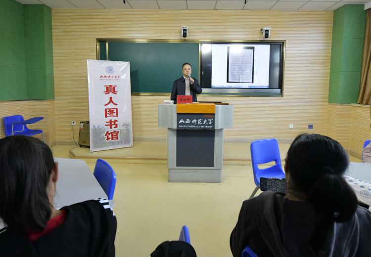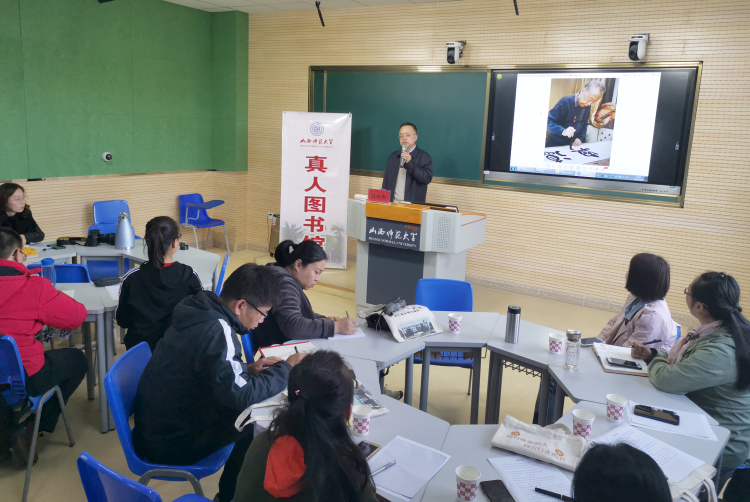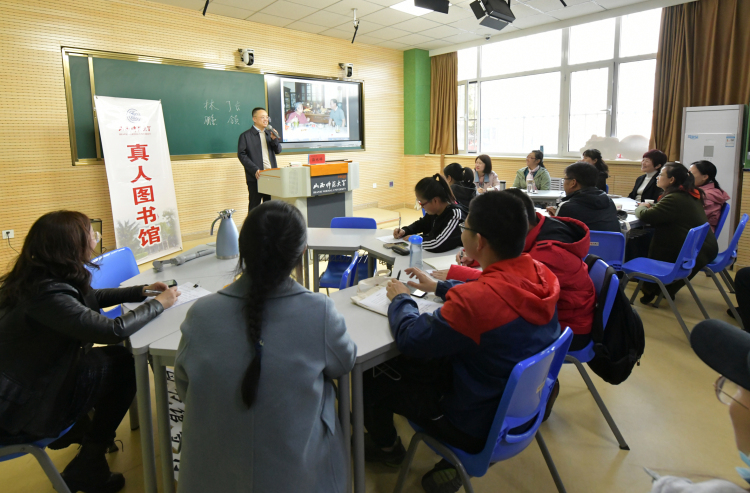 活动伊始,薛珠峰用几组照片向读者们讲述他在艺术道路上的经历,并介绍了对自己影响很大的几位恩师,从“书法结缘、“三笔字教学小先生、“中国书画函授班、“北京书法展览、“翰墨传薪:乐天使专业教师书法作品展等经历,将自己的成长故事娓娓道来。通过小事传授大道理,与读者零距离的交流更容易感受到“听别人的故事,感悟自己的人生的真谛。薛珠峰还就读者提出的“如何理解字如其人等问题与在场的老员工做了深度的交流和探讨。最后在活动结束之时勉励读者:“一是无论生活中遇到什么困难、挫折,我们都要坚定自己的目标,坚持不懈的努力;二是勇于奋斗,争做时代的新人。”启迪“读者”更加宽广的人生之路。