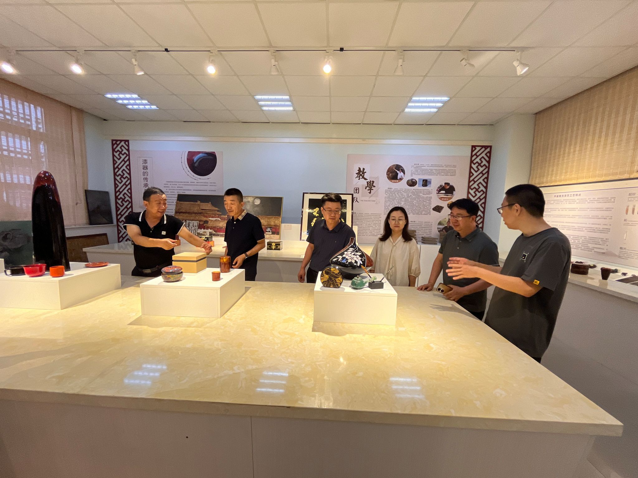 会后,在晋中师专美术系领导和专业老师的陪同下,公司一行晋中师专书法专业教室、实训室以及展览馆进行了实地调研和考察