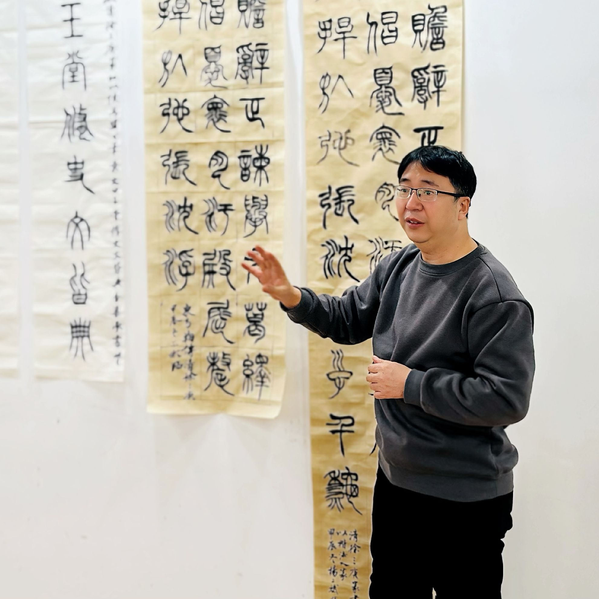 教研过程中,乐天使技法教研室主任王建魁阐述了“演绎经典”主题的价值以及篆书板块的重要性,分享了自己对《祀三公山碑》的临摹、演绎以及创作理念。曹亚彬、杨二斌对徐三庚篆书临创转换进行了具体阐述,王文清对习而乐教师作品进行了一一点评。参与教研活动的教师们一致认为,经典作品承载着丰富的历史文化内涵和艺术价值,通过“演绎经典”,可更好地理解书法的传统精髓,进而实现从临摹到创作的转换。