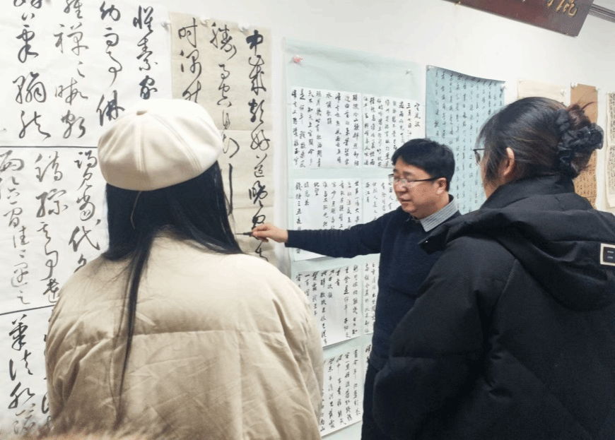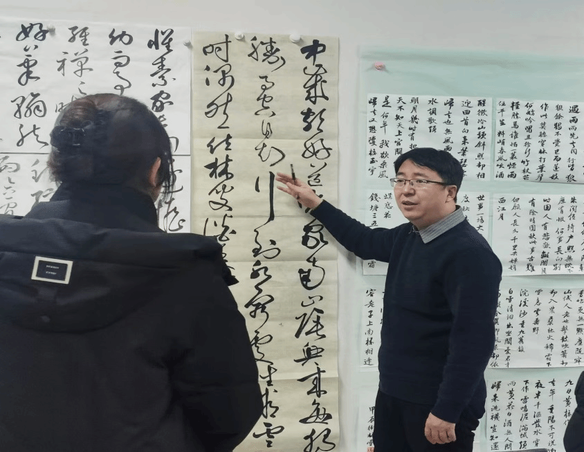 杨老师还特别提醒同学们在创作过程中要注重字法的正确运用,这是书法艺术的基本准则。而在日常学习中,临摹经典作品应作为重中之重,通过临摹,深入体会古人的笔法、墨法与结字技巧。此外,多读书法类书籍也是提升书法素养的关键途径,能够让笔下的字浸染书卷之气,展现出深厚的文化底蕴。