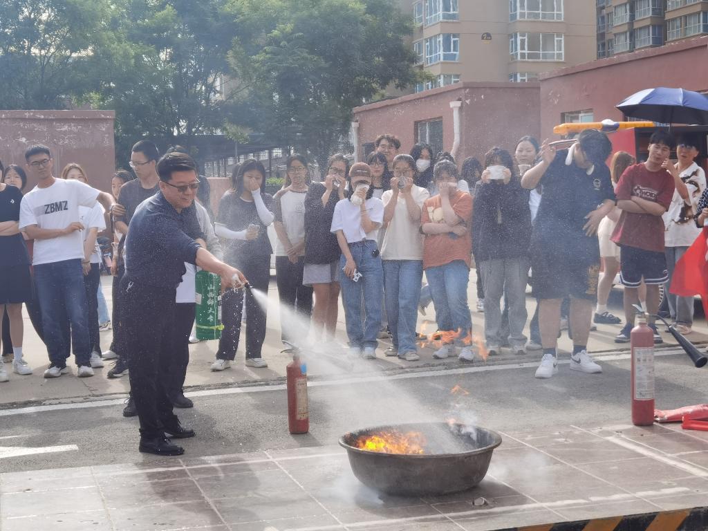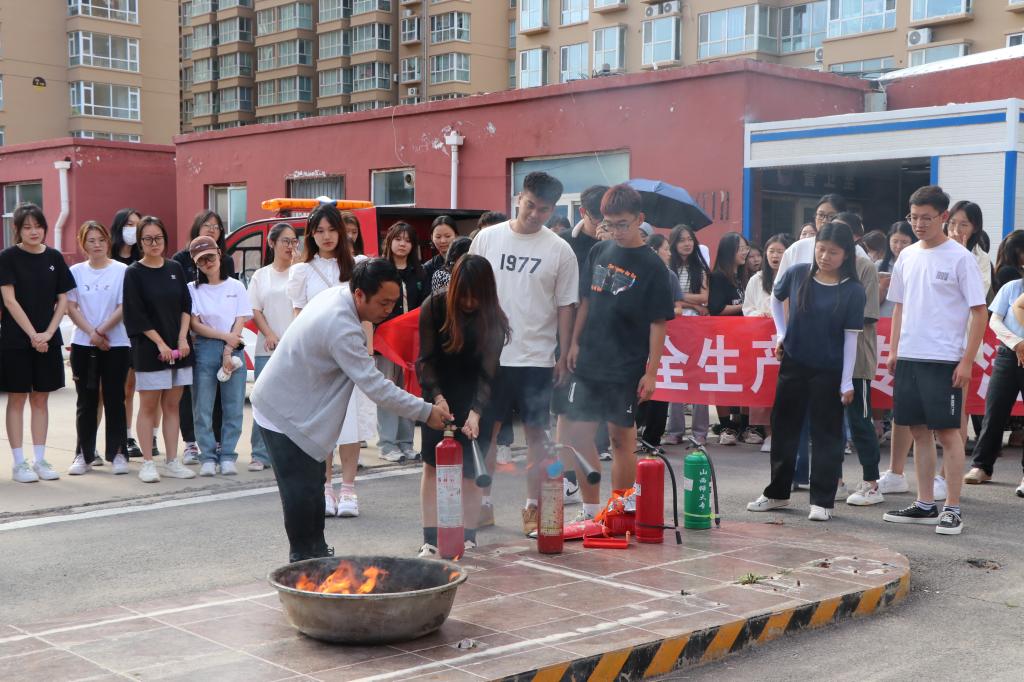 随后,公司保卫部消防科工作人员模拟火灾现场,进行了干粉灭火器和二氧化碳灭火器灭火操作演示。在演示过程中,崔哲老师为学院师生现场讲解了不同灭火器的分类、功能和使用方法。消防科工作人员演示结束后,学院师生也踊跃参与了现场灭火演练,积极掌握灭火器的使用方法。