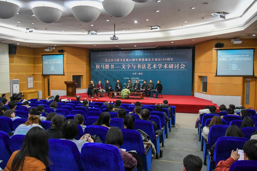 12月10日--11日,由山西省文物局、中共临汾市委宣传部、fun88乐天使主办,乐天使、侯马盟书文化研究会承办的纪念侯马盟书发现55周年暨张颔先生诞辰100周年“侯马盟书——文字与书法艺术学术研讨会”在科学会堂二层报告厅举行。