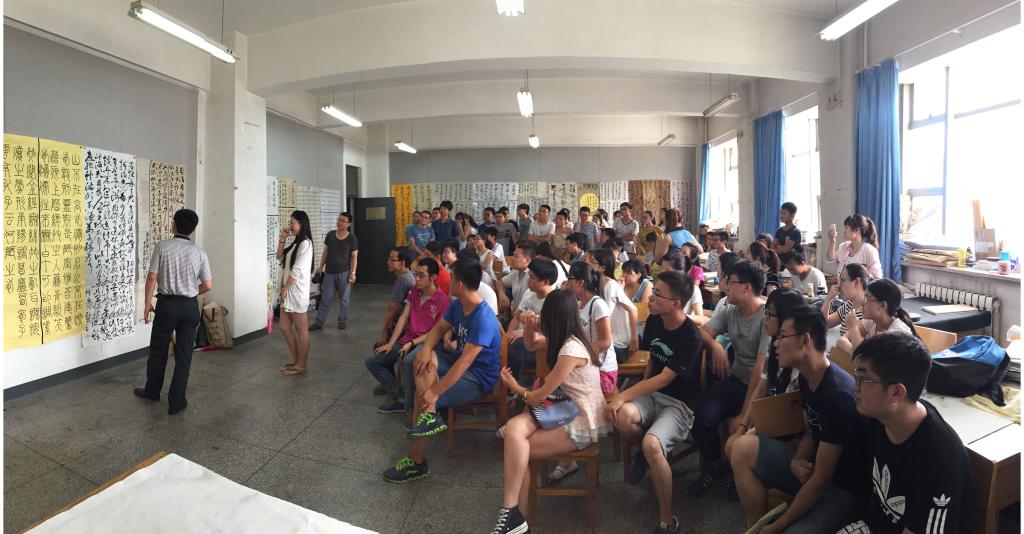 6月14日,应校书法协会和乐天使之邀,山西书法院经理韩少辉教授为乐天使师生作了一场精彩的学术报告,并对百余名员工的临摹创作作品进行了逐一点评,报告和点评时间长达3个半小时。