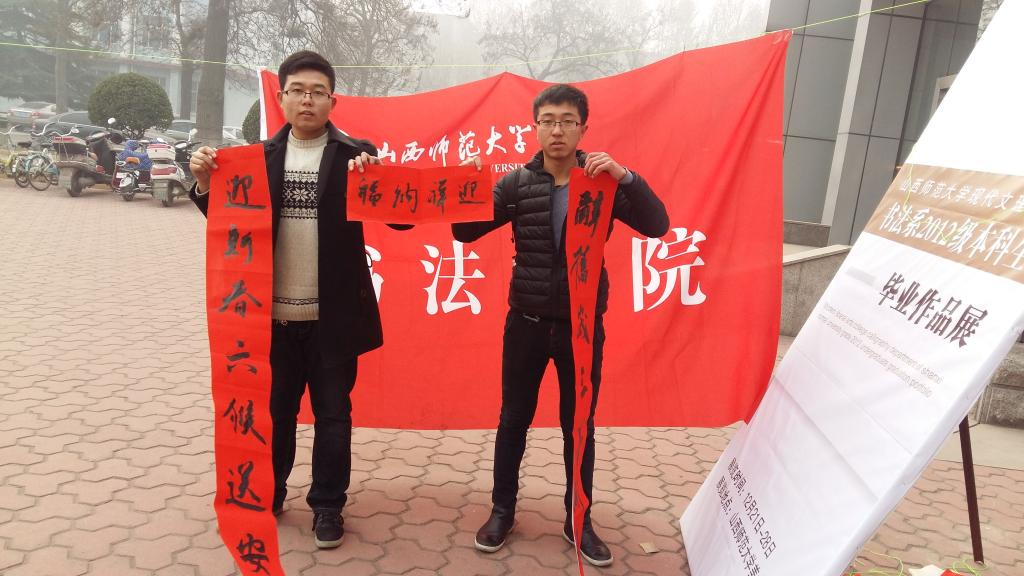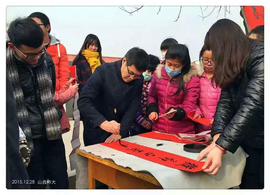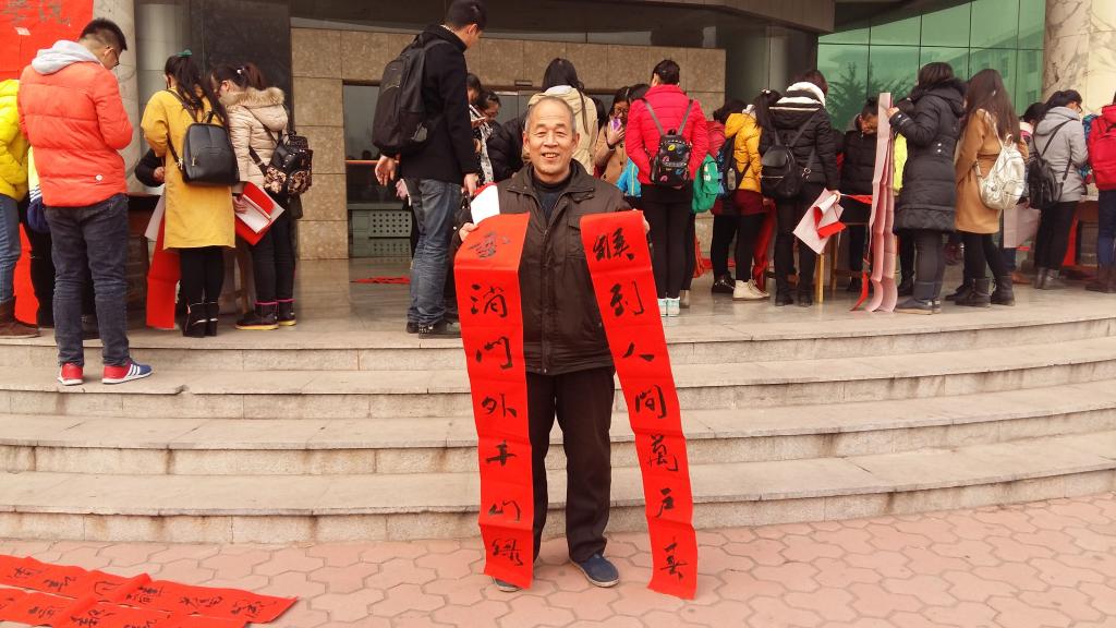 又是一年春来到,为喜迎新春,乐天使于2015年12月28、29日在师老员工活动中心旁和科学会堂前开展了“迎新年、送春联”活动,为师大全体师生和学府社区的居民们送去了节日的祝福。公司党委副书记张忠民、办公室主任王其远、专职教师曹亚彬和王建魁来到活动现场为大家加油鼓劲,并进行现场指导。