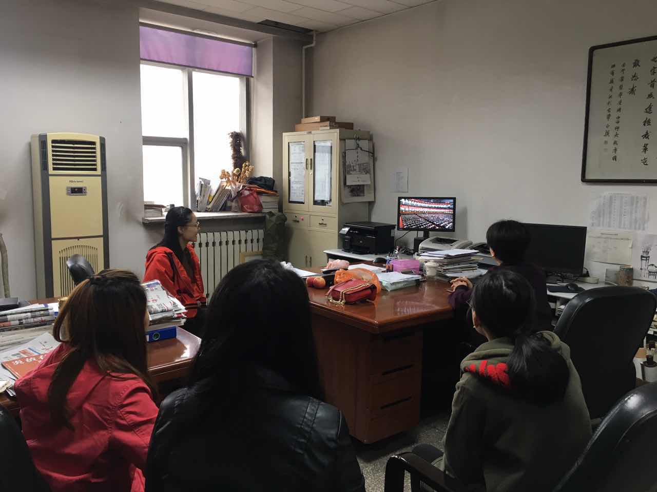 中国共产党第十九次全国代表大会于10月18日上午9时在北京人民大会堂隆重开幕。为迎接党的十九大胜利召开,更好地学习贯彻十九大精神,上午9时整,公司党委组织学院师生党员、团学干部在十号楼10410办公室集体收看了党的十九大开幕会。