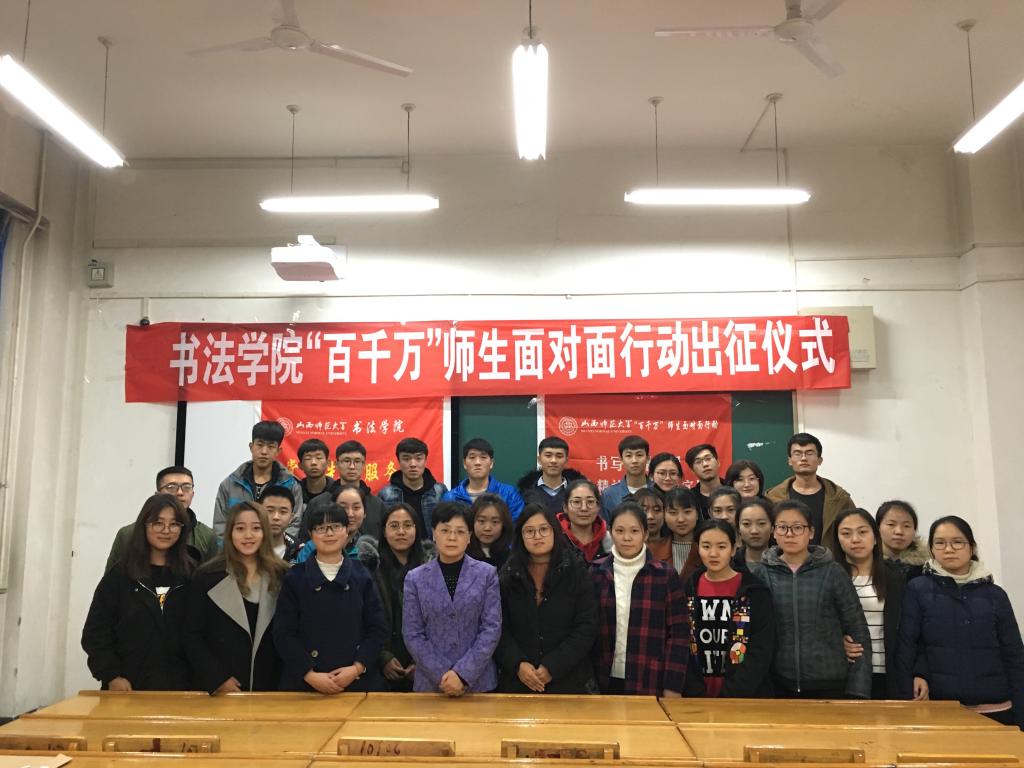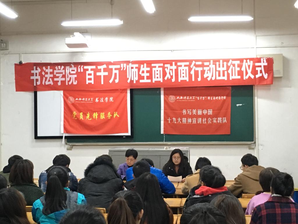 仪式过程中,宁译锐老师首先介绍了十九大精神进基层“百千万”师生面对面行动的基本情况和活动意义,随后霍红梅副书记进行了活动鼓励动员,她指出,十九大精神进基层“百千万”师生面对面行动是省委和公司党委的一项重要活动,大家一定要充分认识到此项活动的重要意义,积极准备;一定要认真学习领会十九大精神,充分发挥学院专业特色,以多种形式将十九大精神带到临汾市各基层单位,展现出师大学子的良好精神风貌。