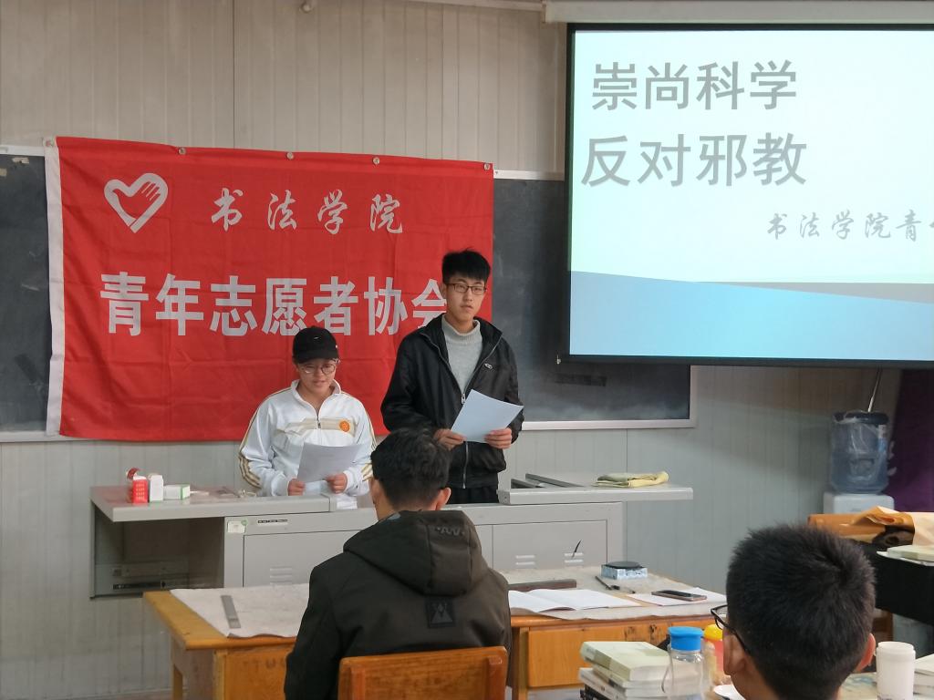 此次活动中,大一干事代表张文强、乔宇丹从一则故事入手,为大家讲述了邪教所带来的危害。随后由青协副主席苏志伟介绍了什么是邪教和反邪教的原因及意义,提倡大家自觉抵制邪教。