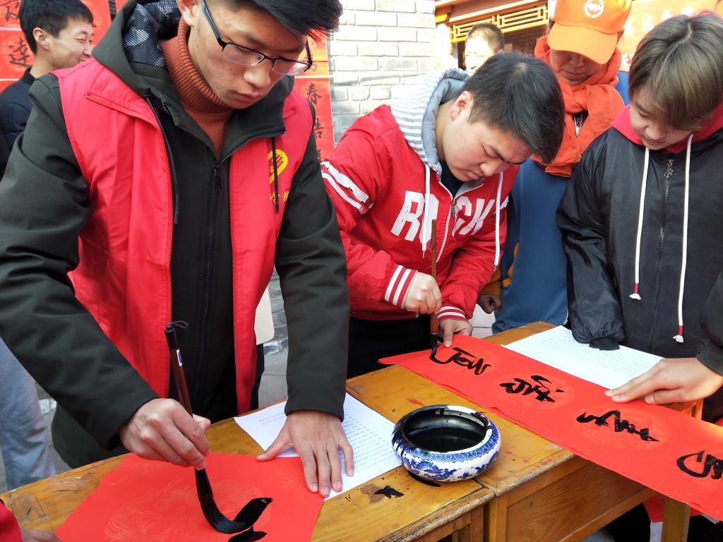 新春将至,2018年1月10日中午,乐天使青年志愿者协会在师大附近老照片艺术长廊展开了“迎新春,送春联”活动,为附近居民及公司周边环保工作人员送去春联和新春祝福。