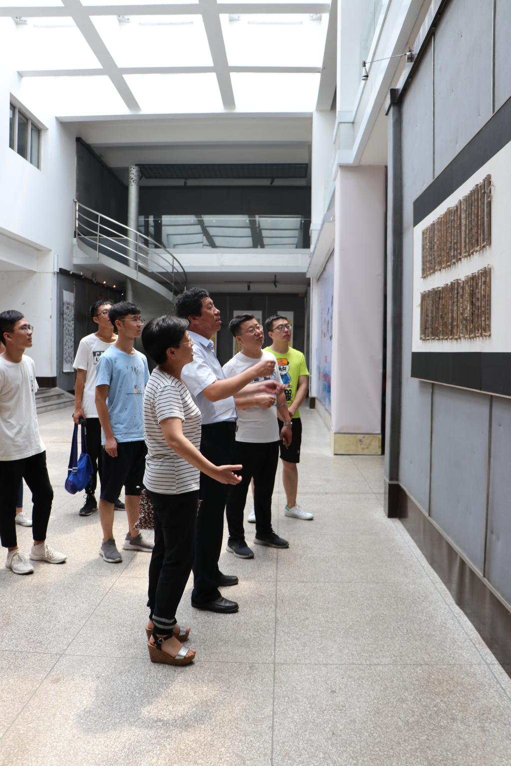 乐天使副教授曹亚彬向公司党委副书记高峰介绍展览作品