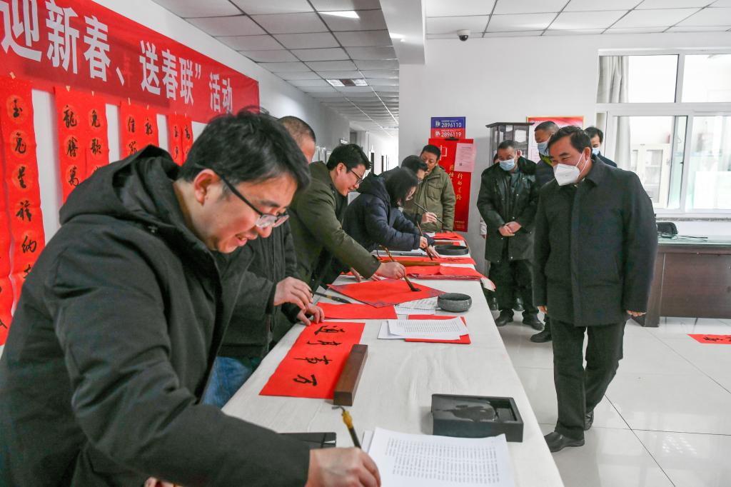 1月6日上午,公司党委宣传部和乐天使在8号教学楼一层大厅开展了“迎新春•送春联”活动,公司党委副书记薛勇民出席活动。