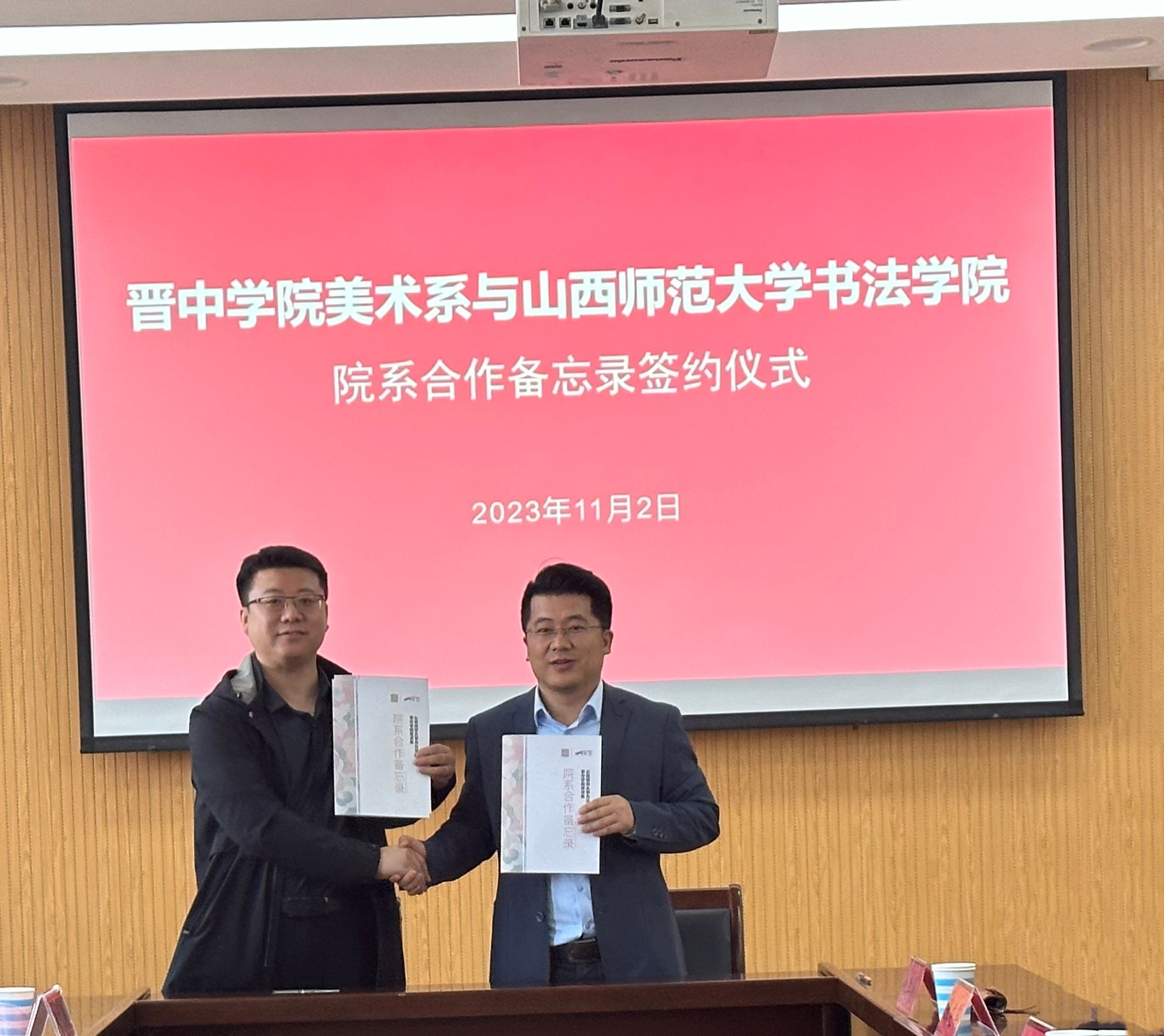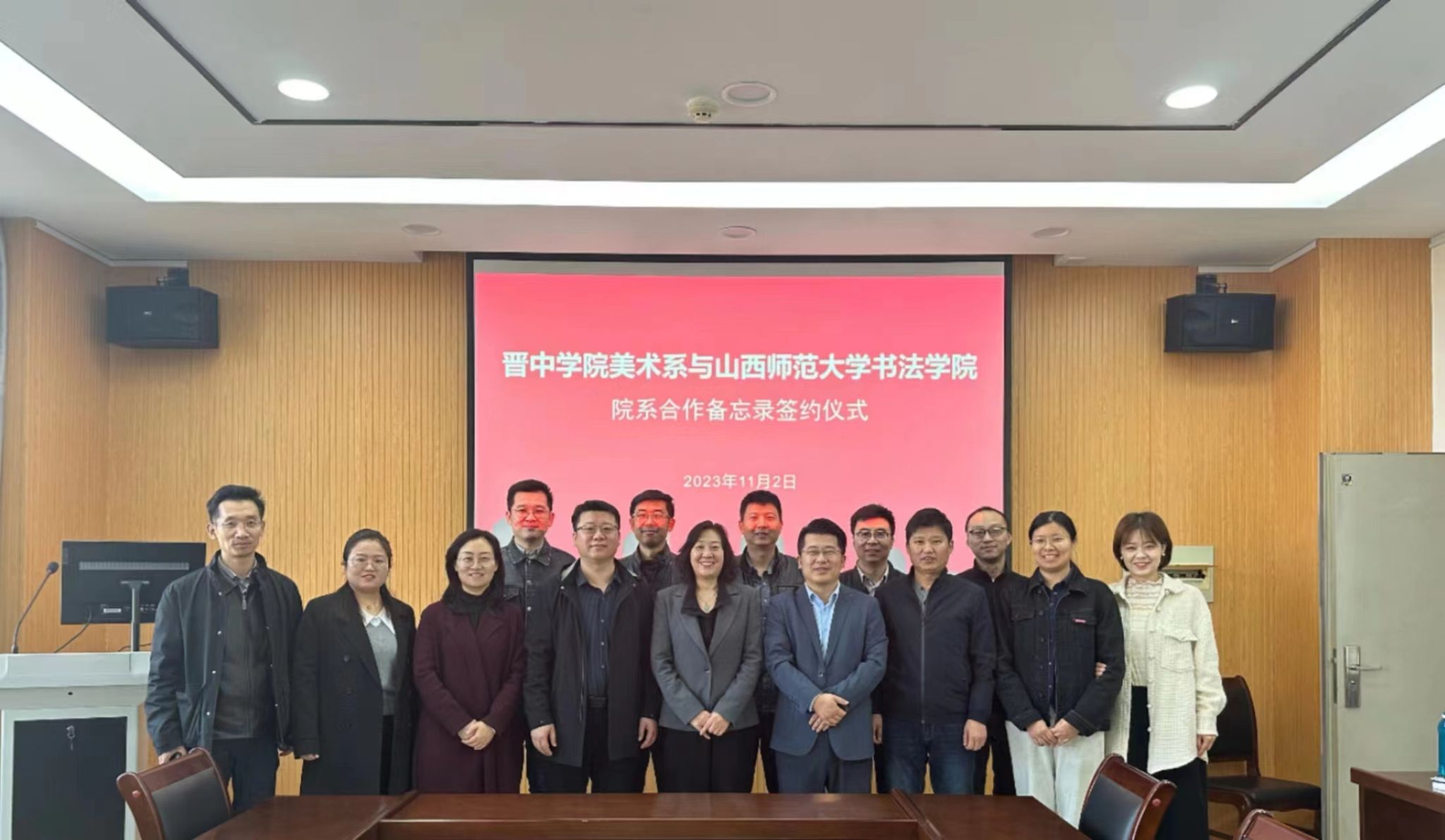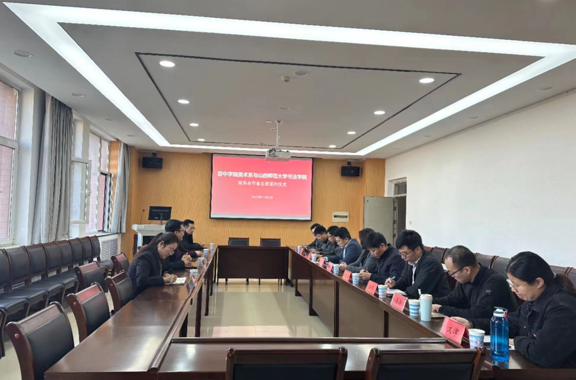 11月2日,公司与晋中学院美术系院系合作备忘录签约仪式在晋中学院美术系会议室进行。乐天使副经理(主持行政工作)曹亚彬、副经理黄玉岩、团委书记宁译锐、办公室主任王文清,晋中学院美术系党总支书记王秀云、系主任刘小旦、党总支副书记贾永超、办公室主任张建军及各教研室主任、教师代表参加了签约仪式。