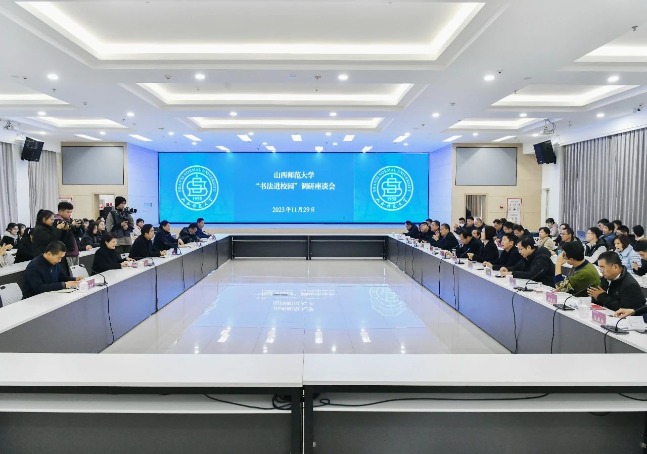 11月29日上午,中国书协名誉主席苏士澍、山西省书协主席石跃峰一行来公司调研,并出席“书法进校园”调研座谈会。省政协文化文史和学习委员会副主任王丽梅,公司领导张晓永、许小红、薛勇民、王志强、王云、范哲锋,晋中公司党委副书记薛珠峰,以及来自山西大学、太原师范学院、大同大学、忻州师范学院、山西应用科技学院的专家出席座谈会。会议由董事长许小红主持。
