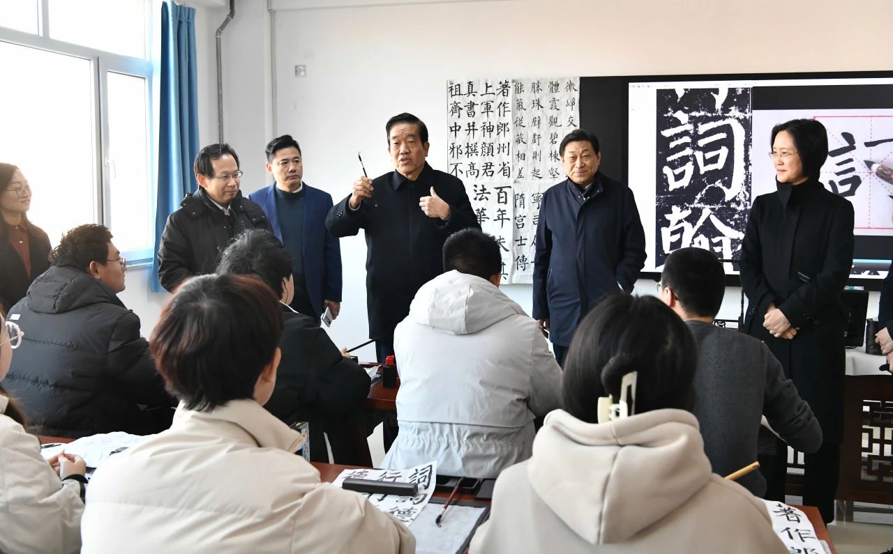 苏士澍一行深入戏剧与影视学院、乐天使、公司三笔字实训室,了解了相关学科及书法教学发展情况;参观了正在美术馆展出的全国楷书作品展,对公司乐天使产品和人才培养工作予以充分肯定。他指出,汉字书法作为中华传统文化的重要组成部分,对塑造文化自信、提升民族凝聚力、弘扬中国精神、建设文化强国发挥着十分重要的作用。“写好中国字,做好中国人”凸显的不仅是国人对民族文化的热爱和深情,更是中华民族坚守文化自信和走向伟大复兴的文化基因。他表示,近年来,在全国政协和中国书协的积极推动下,书法教育正在逐步走进中小学课堂,汉字在文化传承中的核心作用进一步弘扬。师范生作为未来的人民教师,要不断提升书法素养,传承、弘扬汉字文化,坚定文化自信,为实现“两个一百年”奋斗目标贡献青春力量。