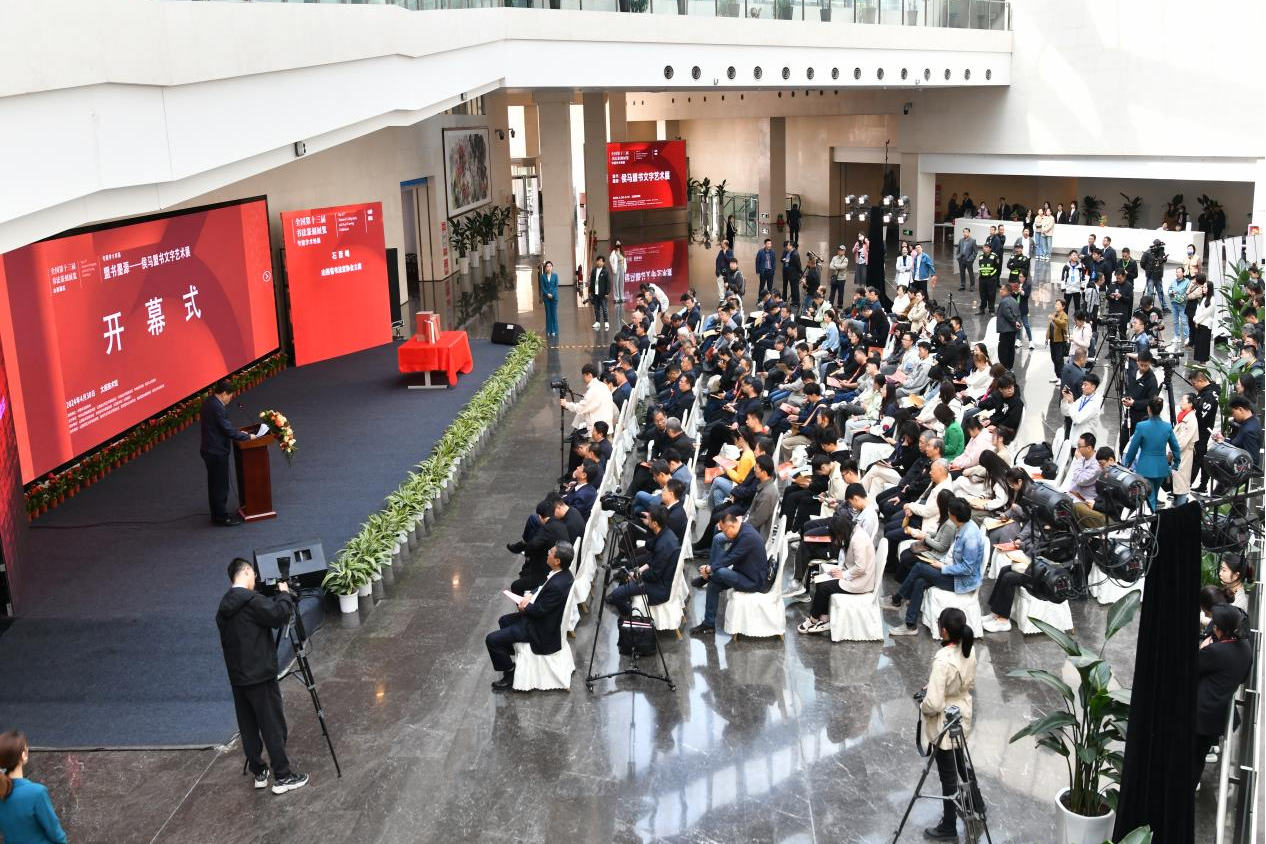 吴勇代表中共侯马市委、侯马市人民政府向出席本次特展的各位领导和嘉宾表示热烈的欢迎,向给予本次展出大力支持的中书协、省文联、省书协及各位专家老师致以崇高的敬意和衷心的感谢。山西省文联党组书记李斌致辞表示,侯马盟书作为山西先秦时期的代表性文字,在中国书法史中占有重要的地位,是中华文脉的历史长卷中浓重绚丽的一笔,作为全国书法篆刻展的专题学术特展,侯马盟书文字艺术展不仅以全新的角度展现了山西春秋时期晋国历史发展,更是全方位展示了侯马盟书的文字美、书法美,让盟书“活起来”。山西省书法家协会主席石跃峰表示,全国第十三届书法篆刻展览在山西展出,对于侯马盟书来说是不可多得的机遇,对于当代书坛来说也是一次扩展视野的好机会,本次特展不仅是一次艺术的盛宴,更是一次历史的回溯和文化的传承与发展,探源中华文明内涵,传承汉字文艺基因,不断推动中华民族现代文明的创新与发展。最后,中国文联书法艺术中心主任王彦宣布展览开幕。