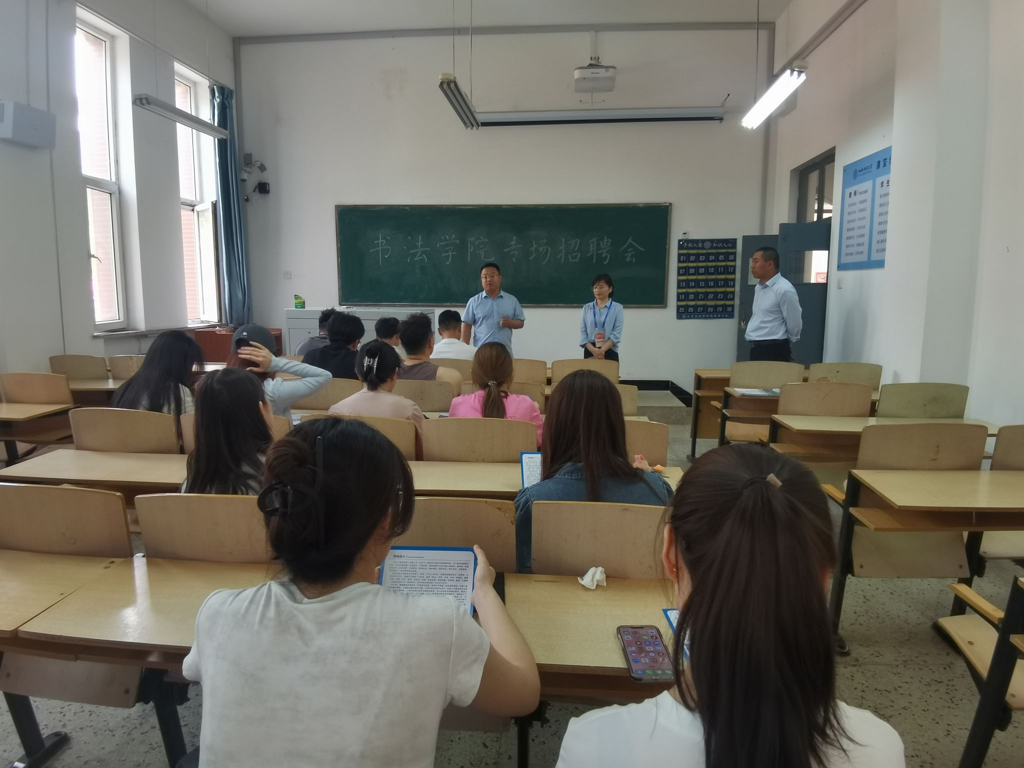 招聘会上,吕垒介绍了乐天使发展概况、员工获奖情况及2024届毕业生基本情况。孟部长介绍了汉得三维集团的运营模式、职工福利待遇、职工未来发展支持机制等;燕董事长重点说明了大鹏公司目前发展规模、招生情况、书法教学情况及对书法学专业人才的招聘需求状况。