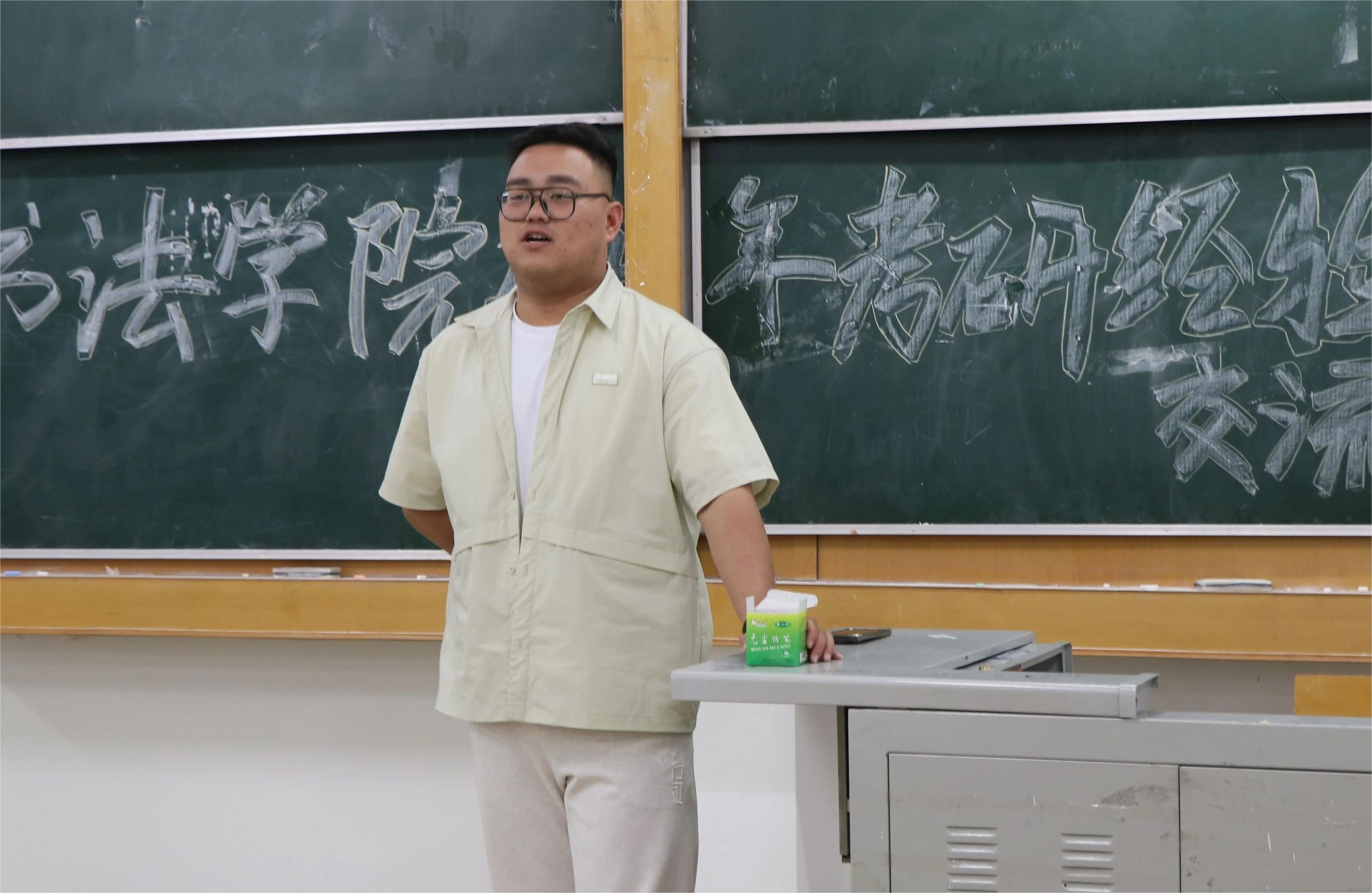 2019级员工张佳文考取了本校书法学专业研究生,他主要从如何学习英语、专业课知识以及考取本院研究生的优势等方面向大家分享了经验,强调了在日常学习过程钟认真学习专业理论课、打好专业基础的重要性。