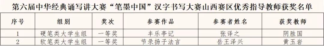 第六届中华经典诵写讲大赛山西赛区优秀组织奖(集体奖)获奖名单