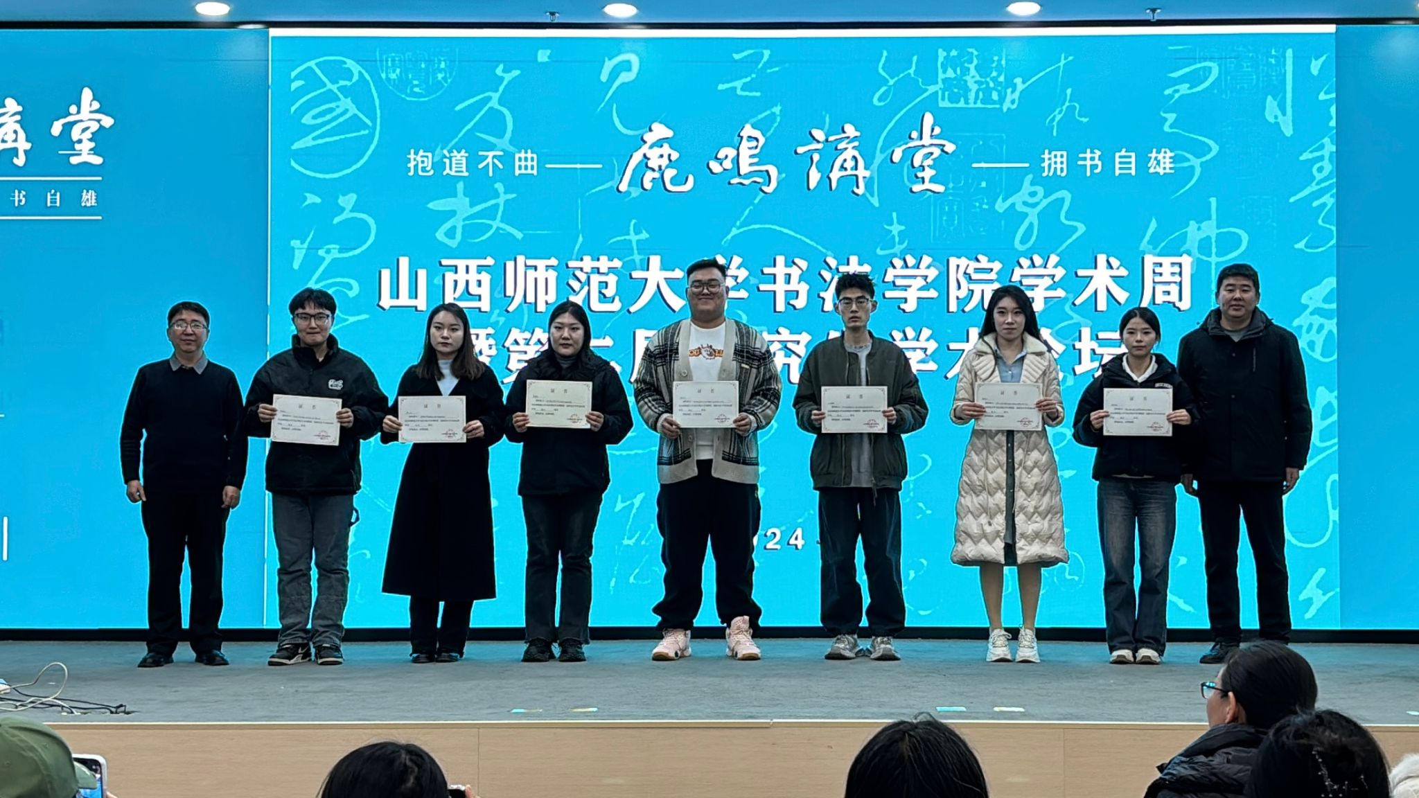 论坛分为学术汇报和学术评议两个环节,共有10位获奖作者汇报。在学术汇报环节,获奖作者分组登台就各自的研究选题、思路、结构框架及研究内容进行了详细阐述汇报。同学们通过丰富的例证和深入的分析,展示了在书法理论研究、技法实践、美学探索等方面的最新成果。