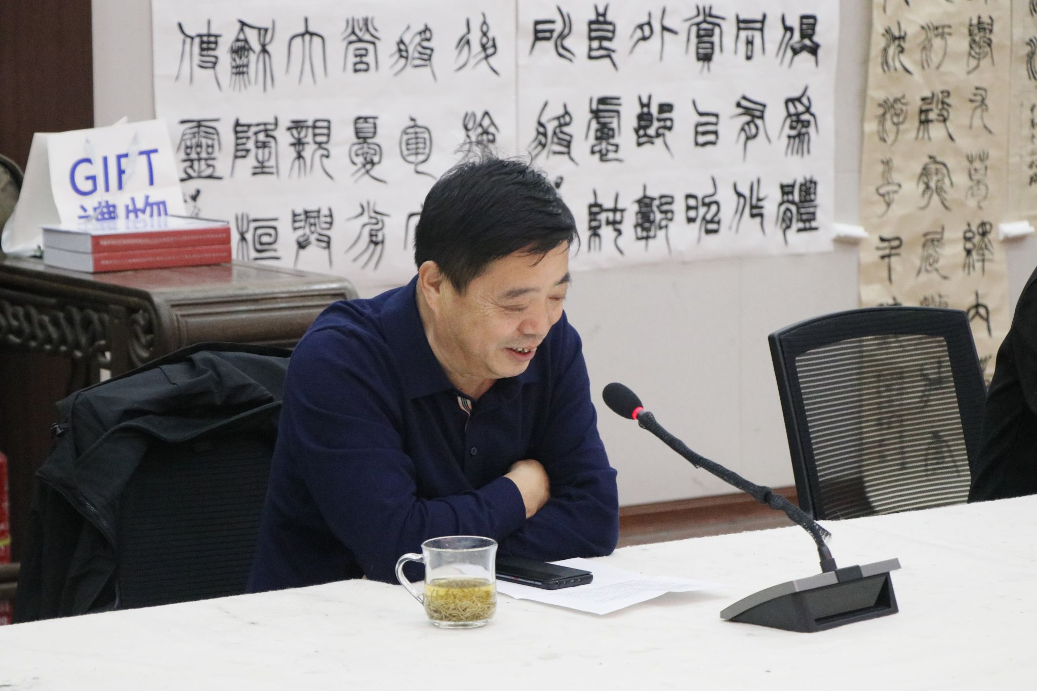 在随后的教研活动环节,由乐天使技法教研室主任王建魁主持。双方教师围绕临摹理念展开了深入探讨。乐天使教师结合教学实践与学术研究成果,详细剖析了篆书临摹的要点与方法;而书画院教师则凭借丰富的创作经验,分享了更具艺术性和个性化的临摹感悟。双方教师的交流互动不仅碰撞出了思想火花,也为在场教师提供了宝贵的教学与创作新思路。