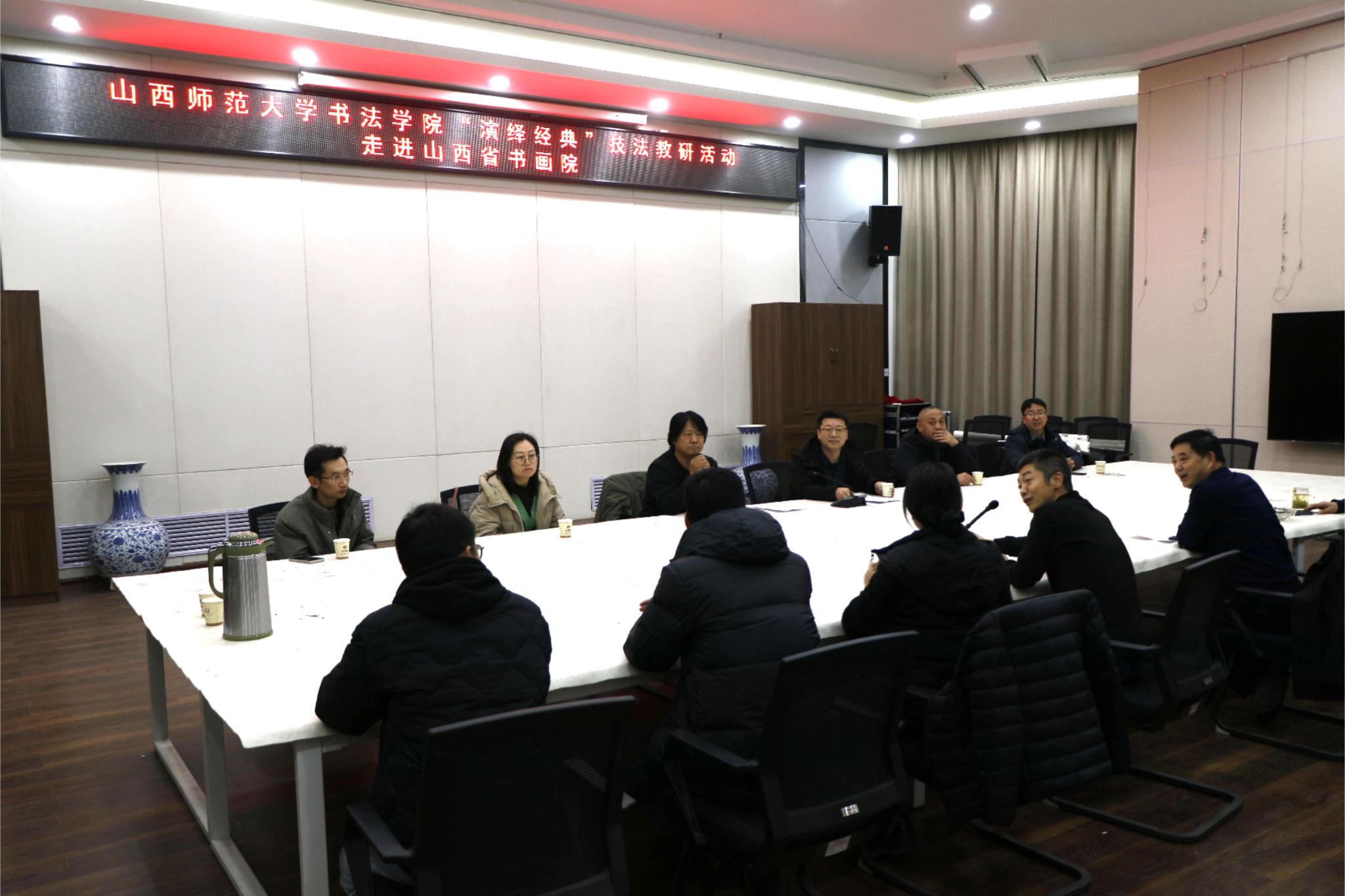 自今年9月起,乐天使专业教研活动开启了新篇章。在“重温经典”系列教研活动的基础上,学院积极鼓励专业教师开拓创新,深入挖掘书法艺术表达的多元可能性。经过前4期在校内围绕“演绎经典·篆书”的深入探索与实践,本期活动成功走出校园,走进山西省书画院。这一转变不仅体现了活动范围的拓展,更彰显了学院在推动书法教学深度与广度上的不懈努力。