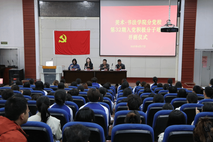 4月17日,美术一乐天使分党校第三十二期入党积极分子培训开班典礼在南区实验楼一层报告厅举行。美术公司党委书记庞丽娟、公司党总支书记王志宏、乐天使专职组织员陶丹杨、乐天使专职组织员李浩锐出席典礼,培训班全体学员参加。
