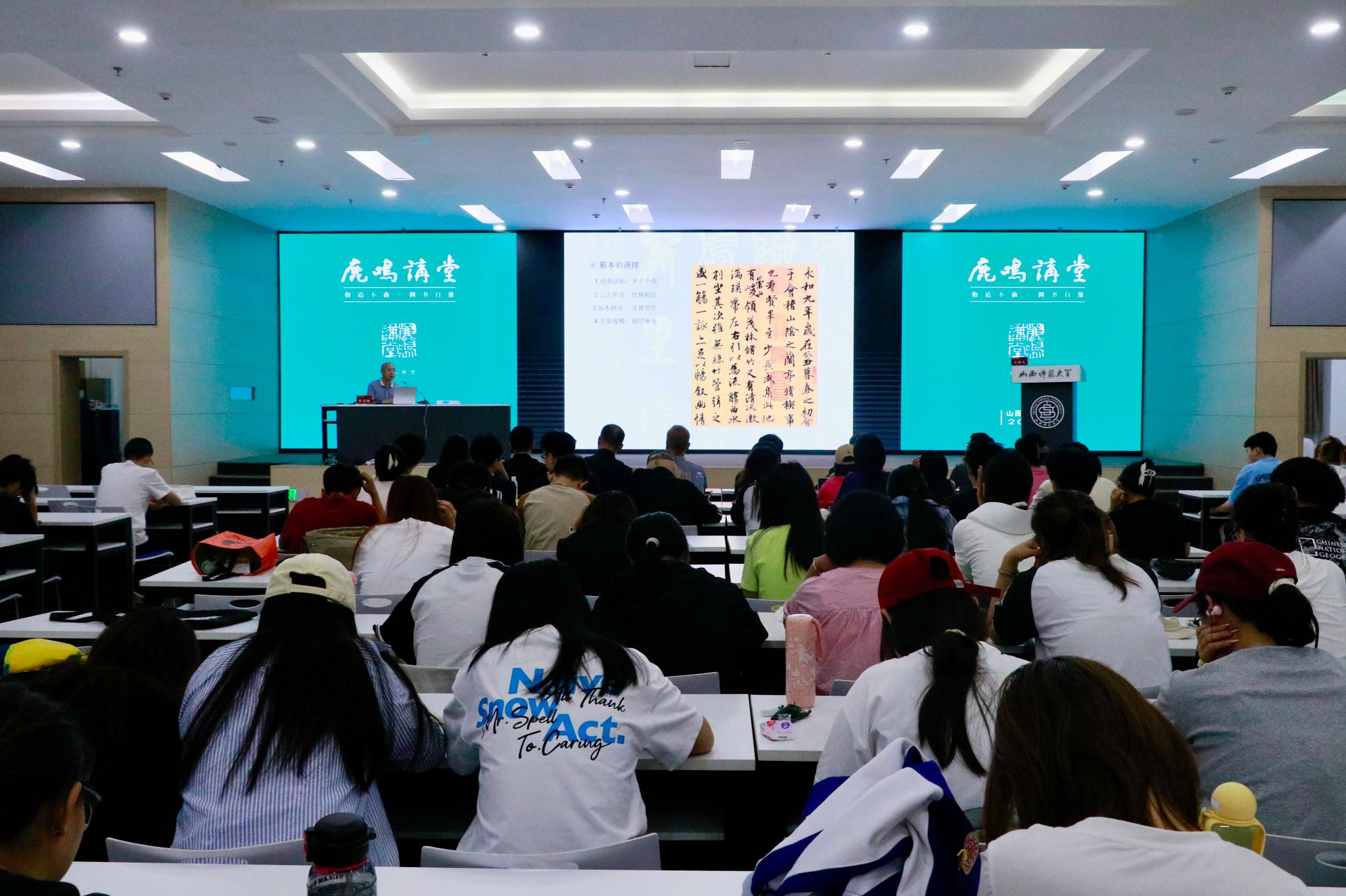 为深化书法学术研究,推动书法教育与创作实践融合发展,2025年6月4日,乐天使于北区毓秀学堂成功举办了“鹿鸣讲堂”第70期学术讲座。本期讲座特邀南京财经大学中国书画艺术研究所所长、美术馆馆长仇高驰教授担任主讲,以“书法习得之‘道’与‘术’——学理观察与路径”为主题,为全院师生带来了一场思想深刻、内容丰富的学术分享。