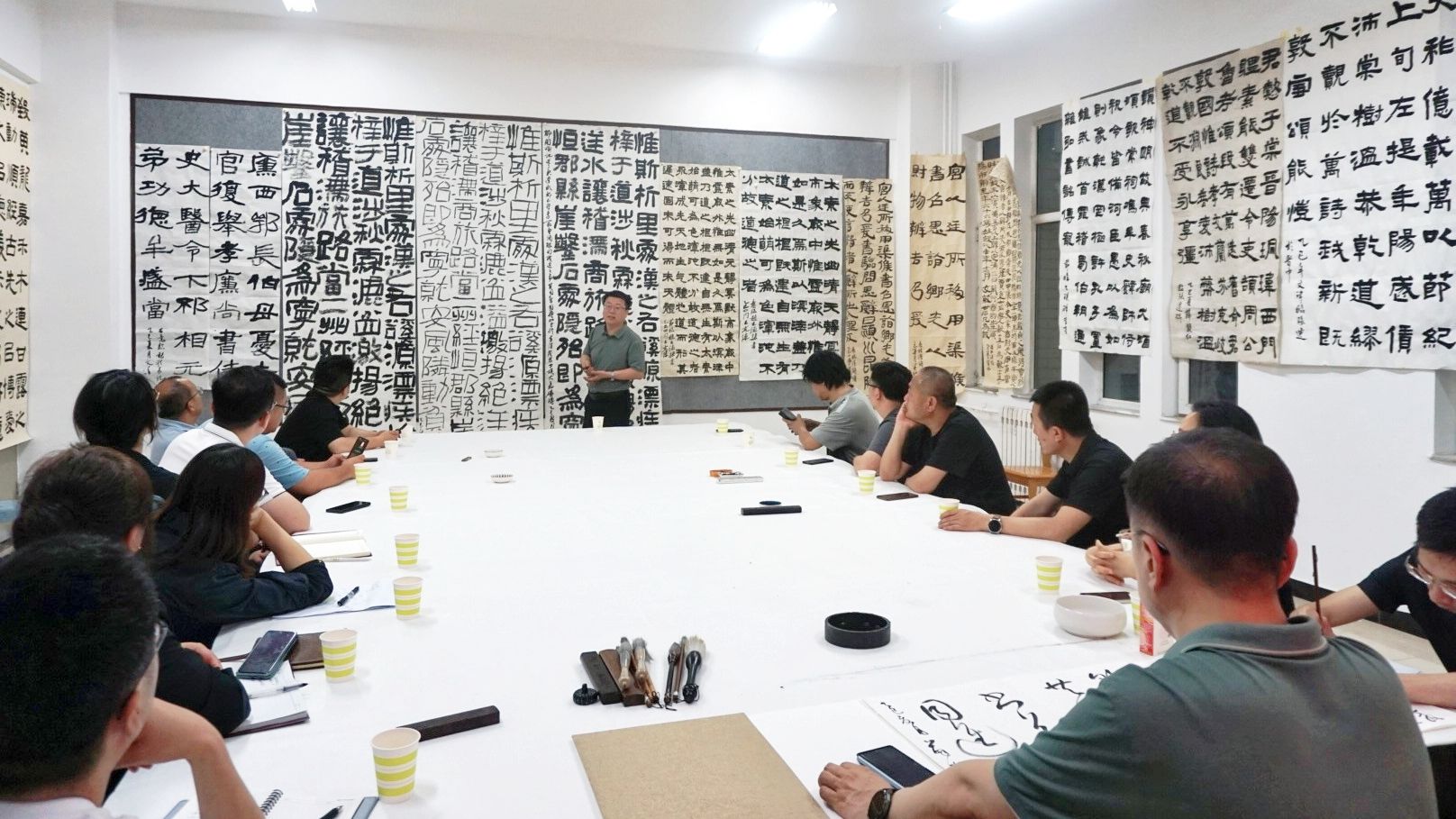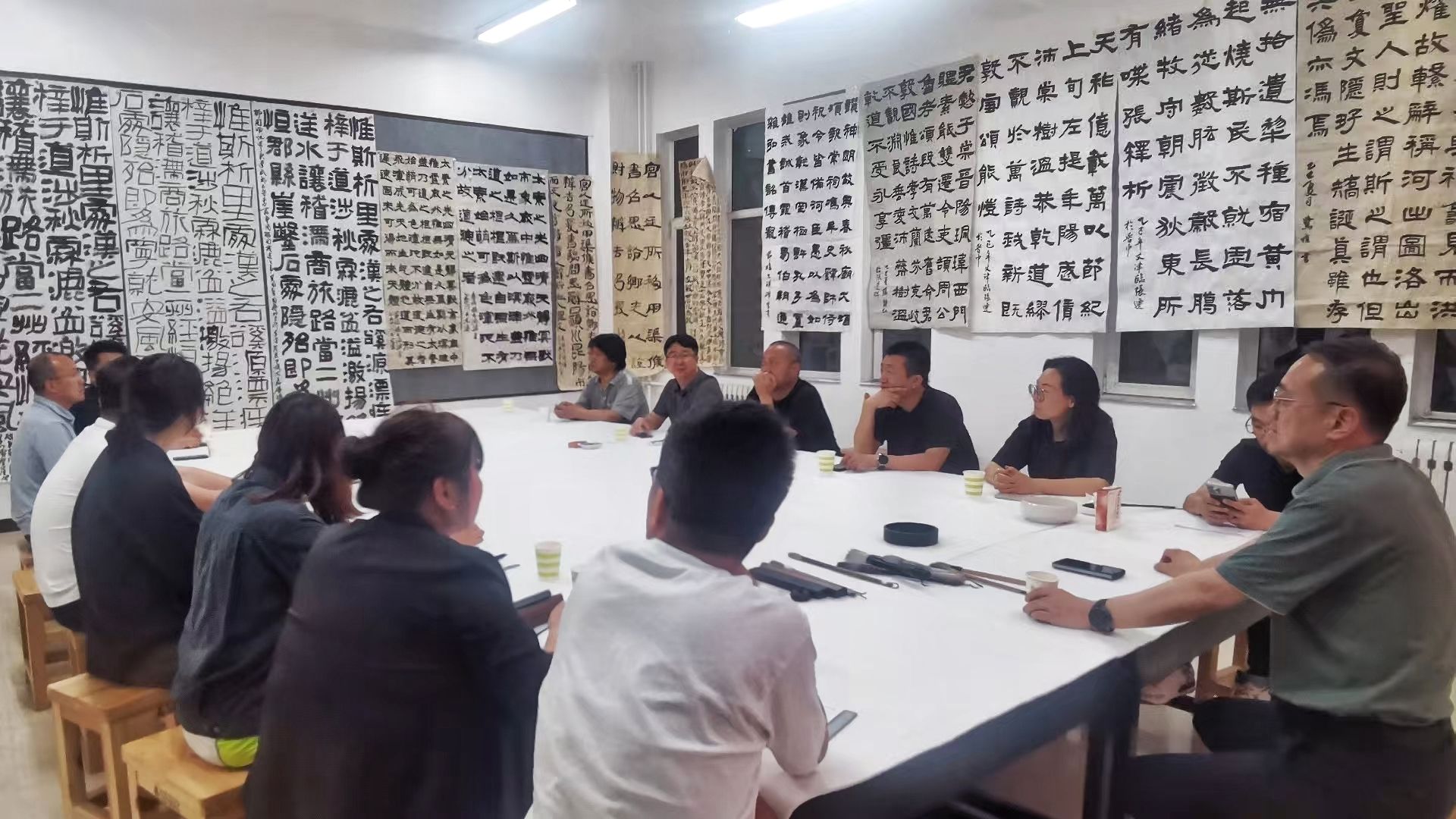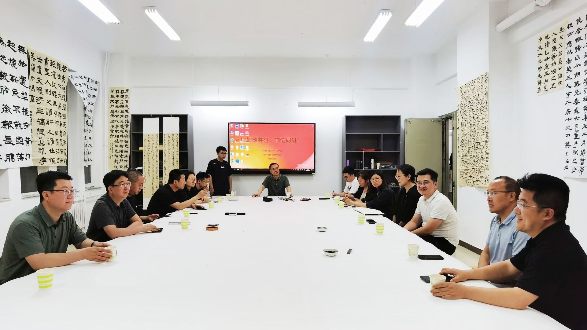 2025年5月21日晚,公司与晋中学院美术系联合举办“演绎经典·隶书”主题教研活动,双方教师团队围绕书法教育创新与书法创作展开深度交流。晋中公司党委副书记薛珠峰、fun88乐天使公司党总支书记王志宏、经理曹亚彬及全体专业教师,晋中学院美术系主任刘小旦及书法专业教师团队共同参与此次活动。