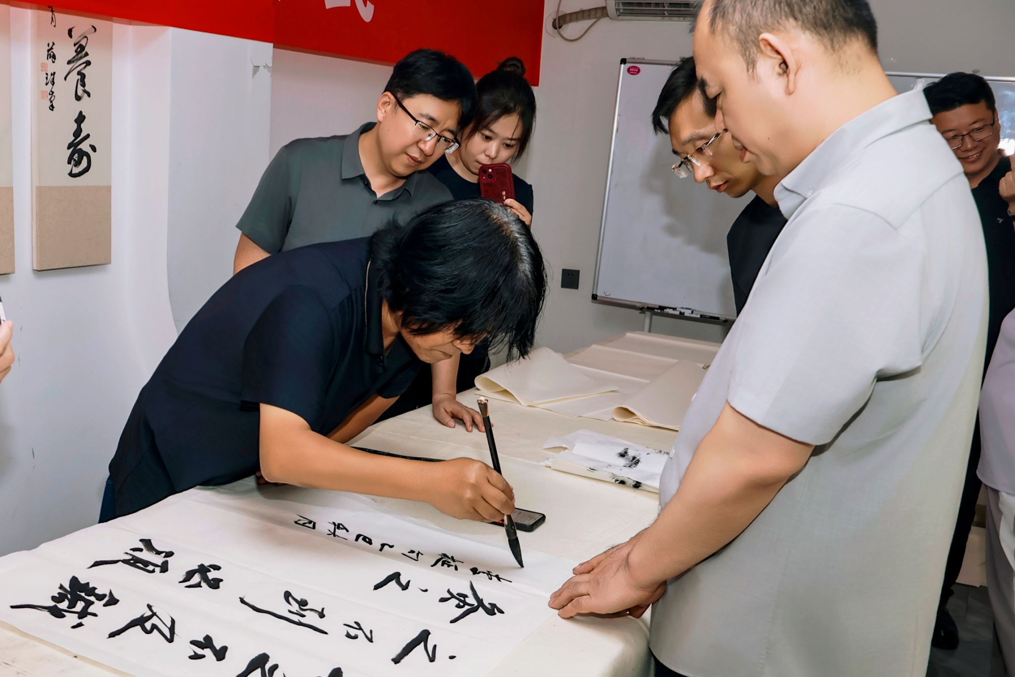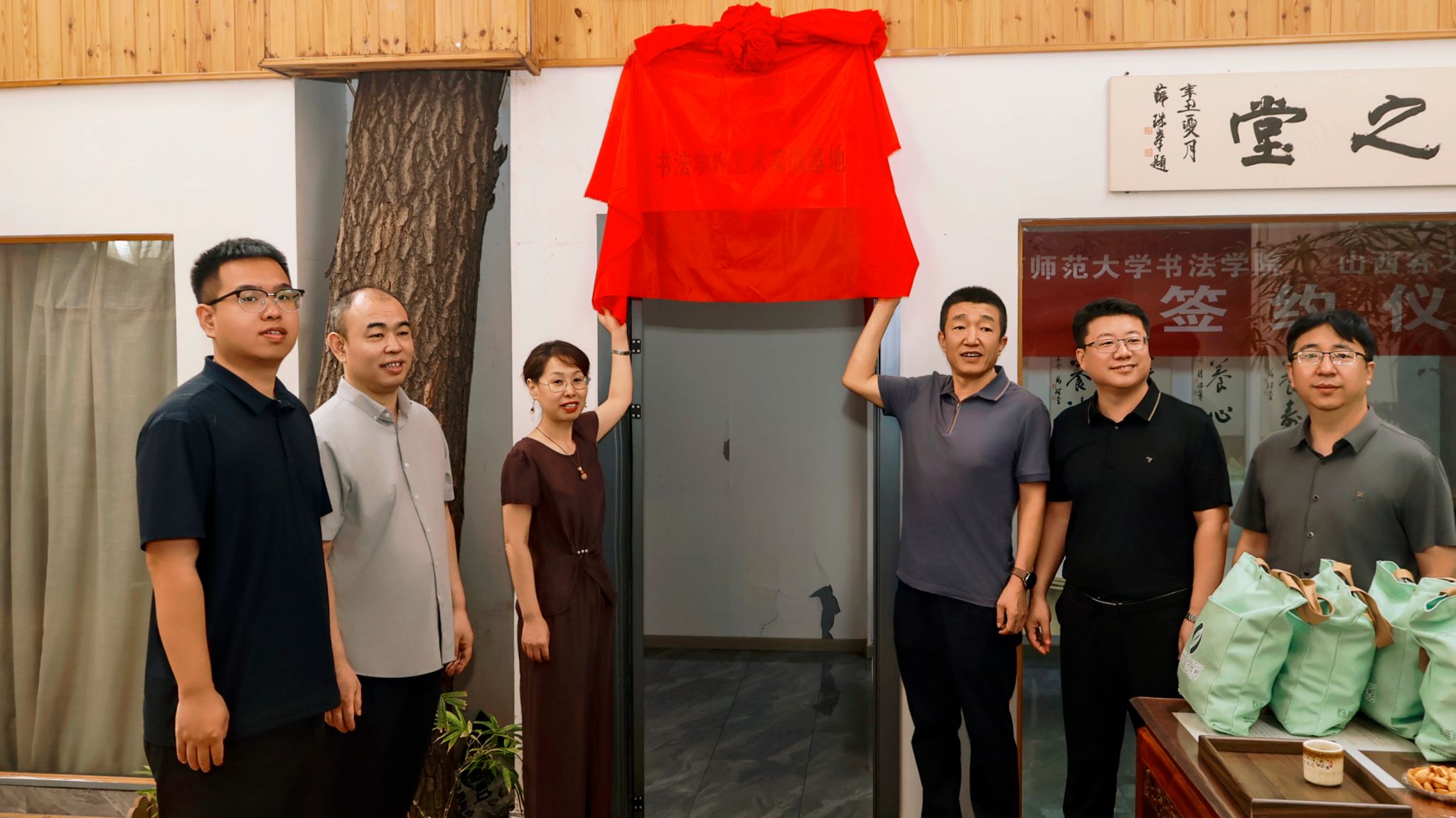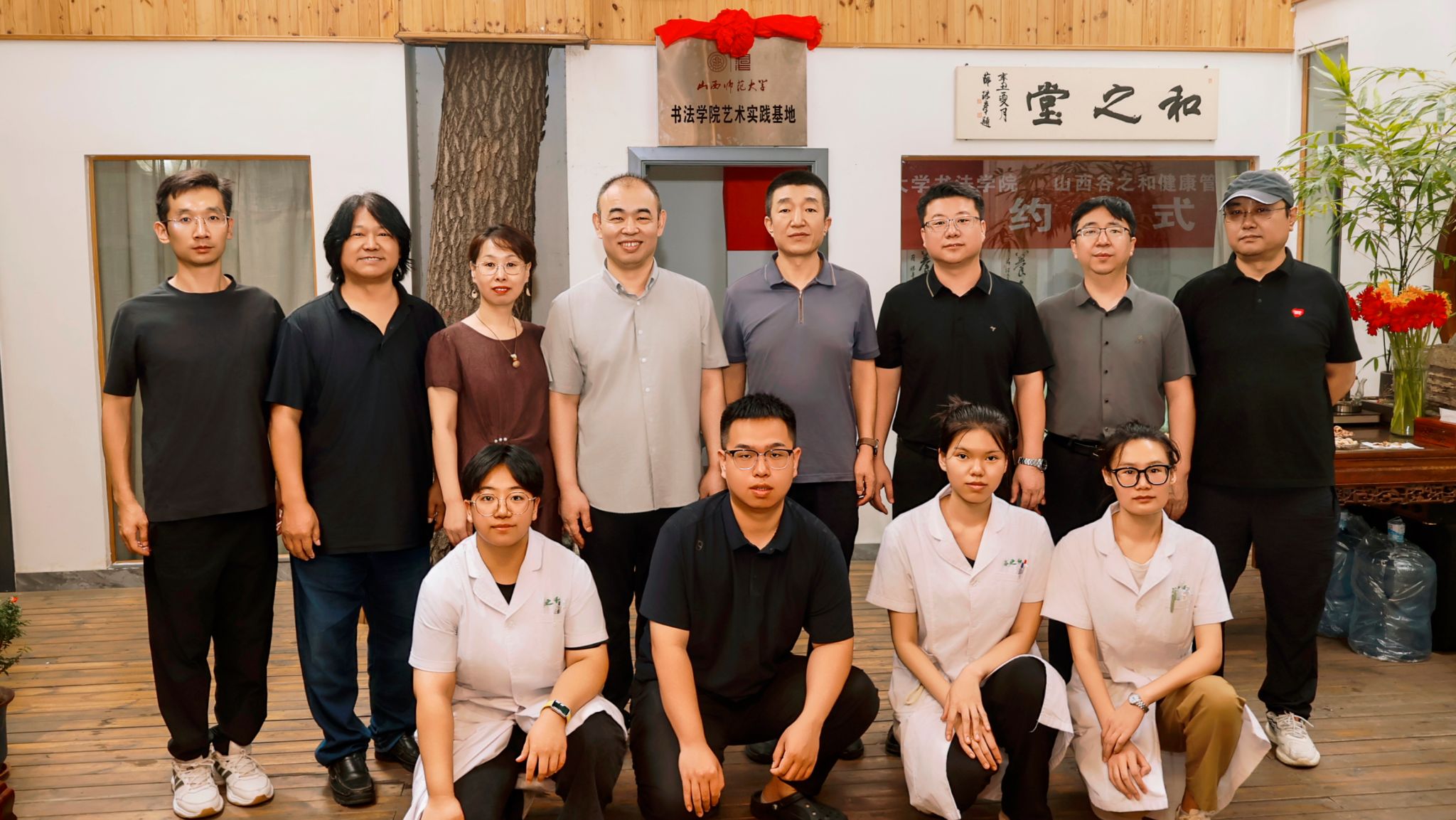 仪式最后,王志宏书记与谷宝仓经理共同为艺术实践(创作)基地揭牌。双方合影留念。揭牌仪式结束后,学院一行参观了谷之和公司的健康管理设施及文化展示空间,并就后续合作的具体内容进行了初步座谈。