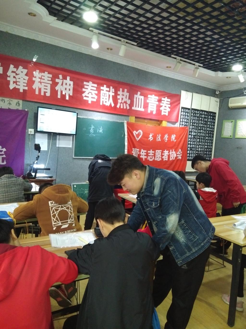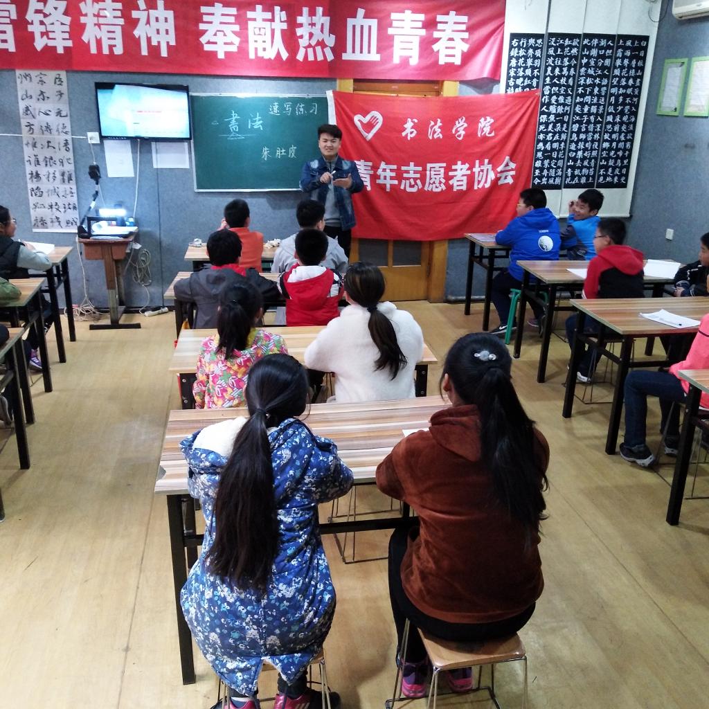 在与该校董事长协商好合理的上课时间后,志愿者们先与孩子们一起在课下做游戏,在游戏过程中志愿者们与孩子们分享了雷锋事迹。课堂上,志愿者为孩子们讲述了书法的发展历史、汉字发展演变和软硬笔基本笔画技法,尽自己的所能让孩子们掌握更多的书法知识。孩子们也在课堂上为收获新知识不时地展开笑容。活动结束后,志愿者们在孩子们的欢声笑语中离开了公司。