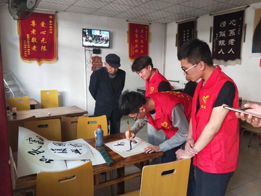 下午4点,志愿者们怀着热诚之心来到敬老院,现场书写“福寿康宁,繁荣富强”的祝福话语并送上特意准备的慰问品,老人们对书法作品表示深深的喜爱。随后,志愿者们手握手地与老人们交流沟通,认真倾听他们讲述老一辈的艰苦生活,深切感受到了今天美好生活的来之不易。最后,志愿者们为敬老院打扫了卫生,希望给老人们提供更舒适的生活环境。