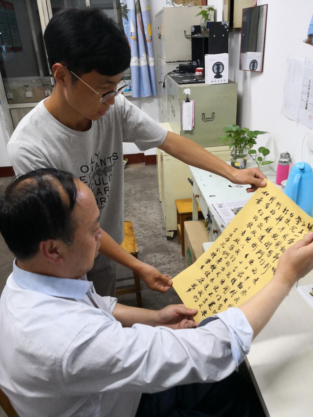 支部成员和宿舍管理员一起阅读感谢信