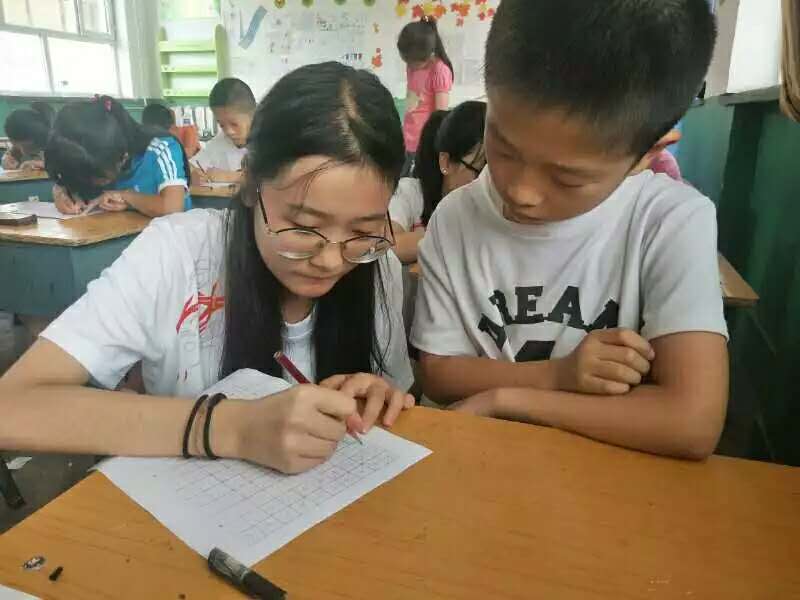 通过对当地教学情况的考察,与小学董事长取得联系后,实践服务队在苏村小学开展了第二个项目——“书法学习课堂”。孩子们对队员们的到来表示热烈欢迎,在课堂上孩子们交流互动频繁,气氛轻松愉快,教学过程中,实践队成员向孩子们传达了习近平总书记对青年的寄语以及六一儿童节习近平对儿童回信。青少年是祖国的未来,希望通过此次活动可以帮助苏村小学的孩子们树立正确的价值观,深刻体会习近平总书记和党中央对他们的期待与爱护,为中国梦的实现努力学习,成长为栋梁之才。