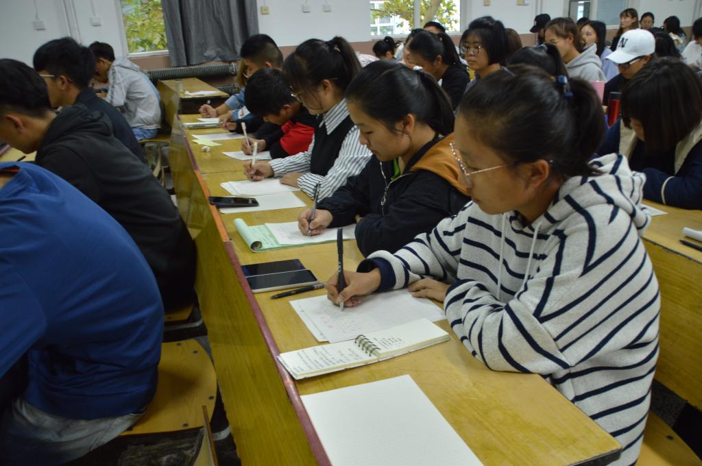为提高员工书法教学能力,更好参与公司在师大实验小学实践育人基地和志愿服务基地的实践教学1017日,公司邀请研究生孙克斌在02218教室对大一大二全体员工进行了硬笔书法教学能力培训活动。