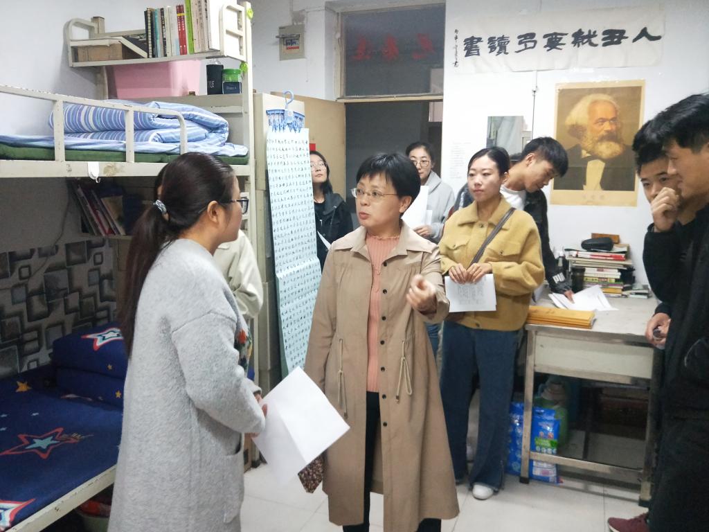 在检查过程中,老师和同学们深入到每一个宿舍,详细检查是否存在安全隐患、东西是否摆放有序、宿舍是否干净卫生、宿舍成员是否文明礼貌、宿舍的文化特色等。霍红梅副书记充分肯定了同学们宿舍文化建设的成效,并有针对性地指出了各个宿舍存在的不足和需要改进的措施。她希望同学们进一步增强宿舍文化建设的积极性、主动性,进一步增强集体荣誉感和爱校情怀,再接再厉,共同维护宿舍安全卫生,共同创建文明宿舍,以饱满的热情,良好的精神风貌和宿舍环境迎接教育部对公司的本科教学审核评估。