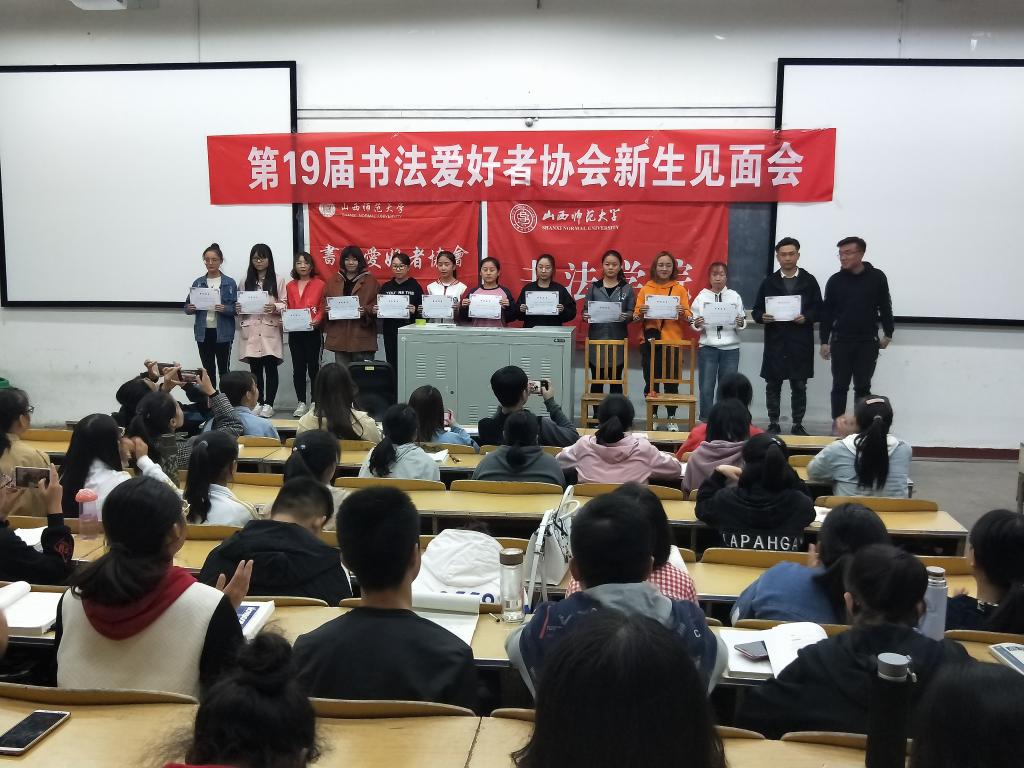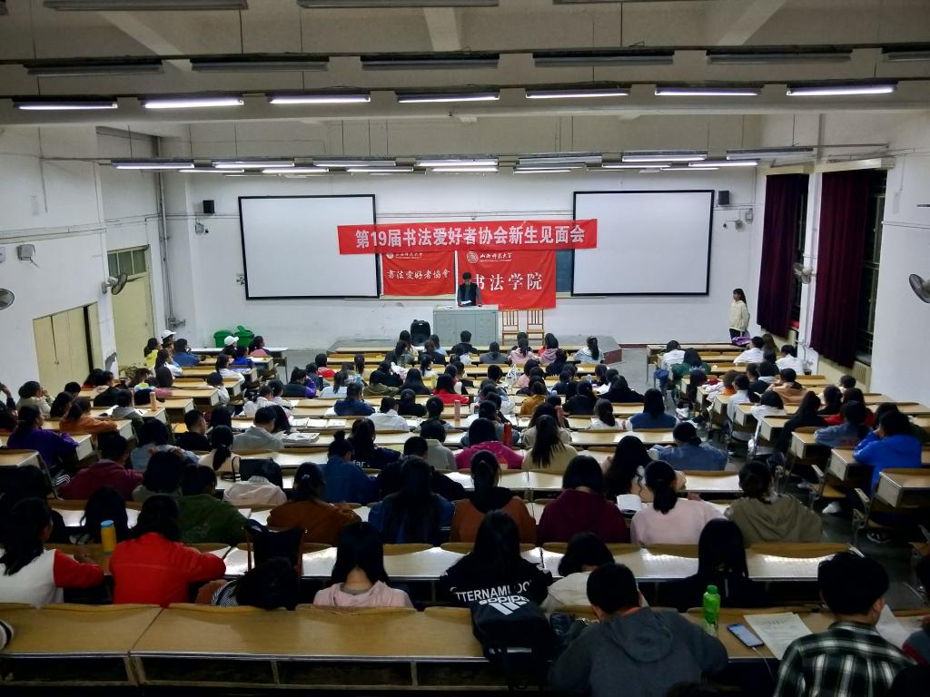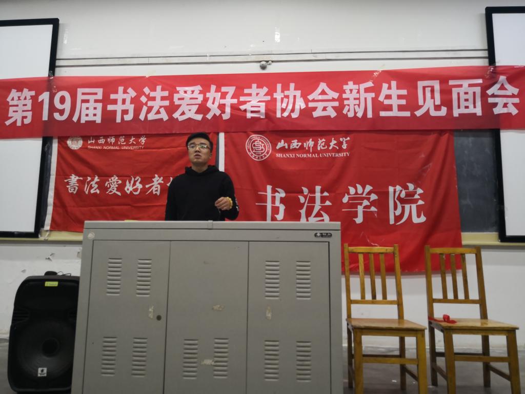 2018年10月21日19:00,书法爱好者协会新生见面会在5号楼05103教室顺利举行。