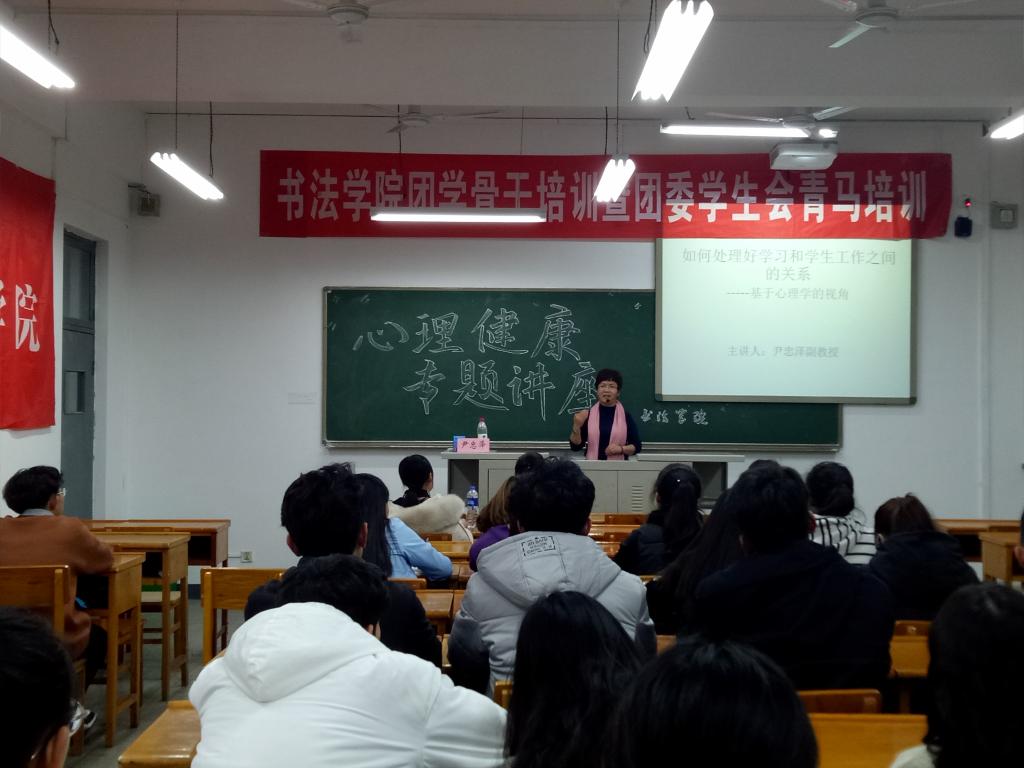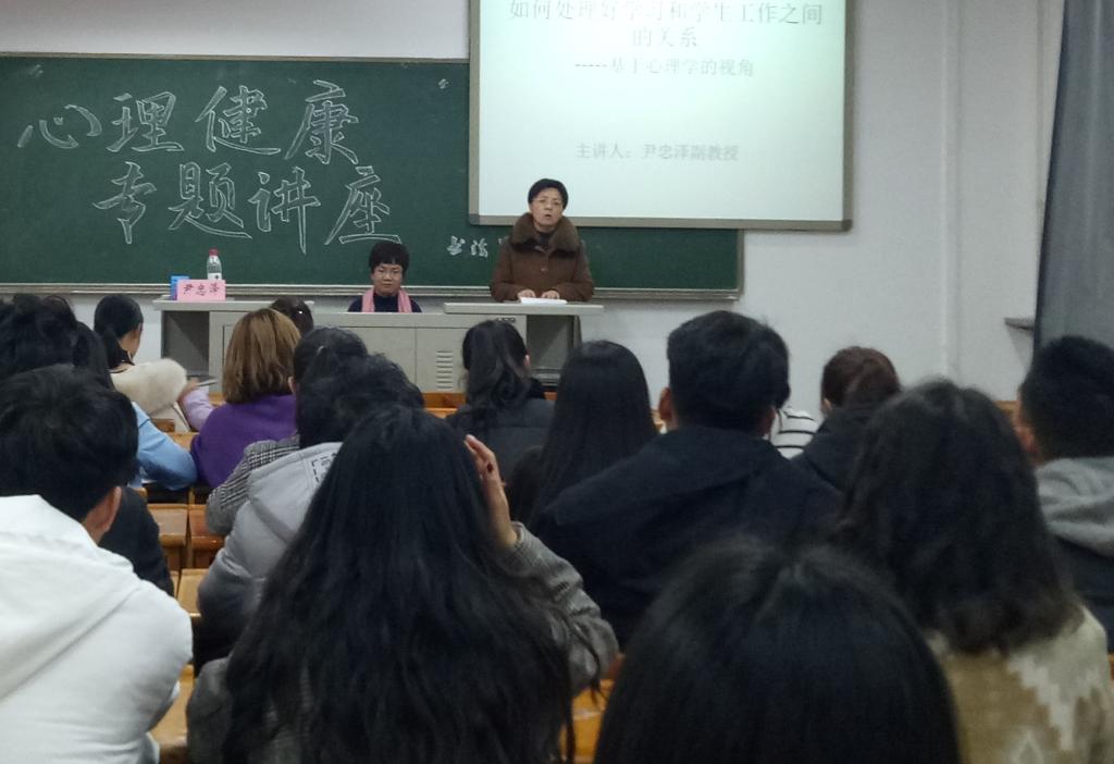 11月26日晚,乐天使邀请公司教育科学学院尹忠泽副教授在07313教室开展了心理健康专题讲座。讲座由公司党委副书记霍红梅主持,学院各专职辅导员、主要学团干部、学院青马班成员参加了讲座。