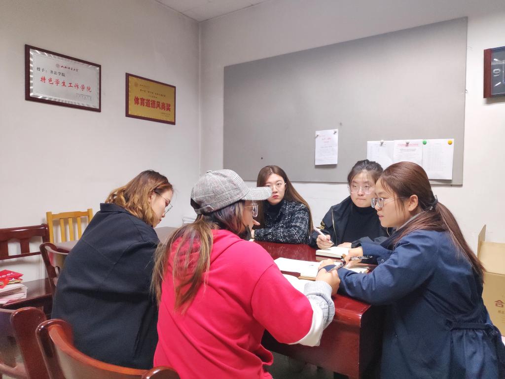 10月21日下午,乐天使团委在10412办公室召开团支部工作专题会议。会议由院团委副书记宁译锐主持,各年级团支书参会。