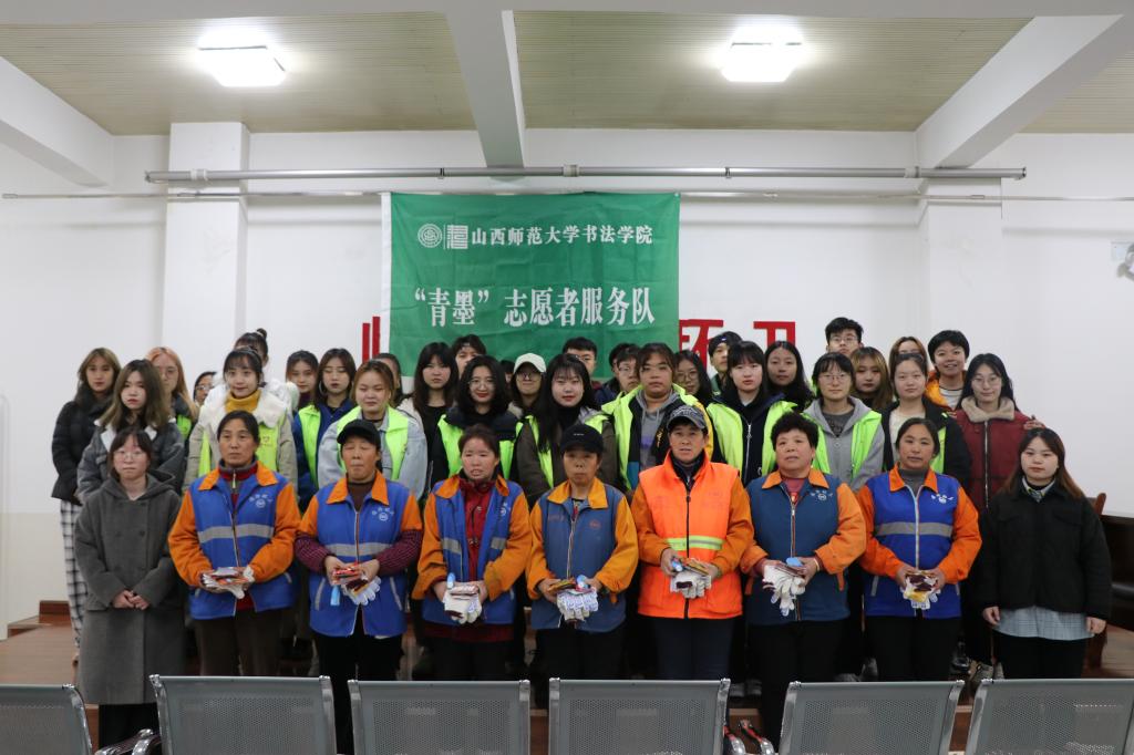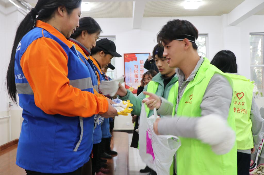 在抵达环卫所并表明来意后,志愿者们向环卫所的阿姨们送上了手套、耳罩、暖手宝等保暖用品,并细心提醒她们工作时要注意安全,注意保暖。环卫所所长也代表环卫工人们对志愿者们的爱心表示了感谢。最后,志愿者们帮助环卫工人们进行了清扫街道的工作,冬日料峭,寒风凛冽,但丝毫没有影响志愿者们的服务热情,经过大家的不懈努力,街道焕然一新。