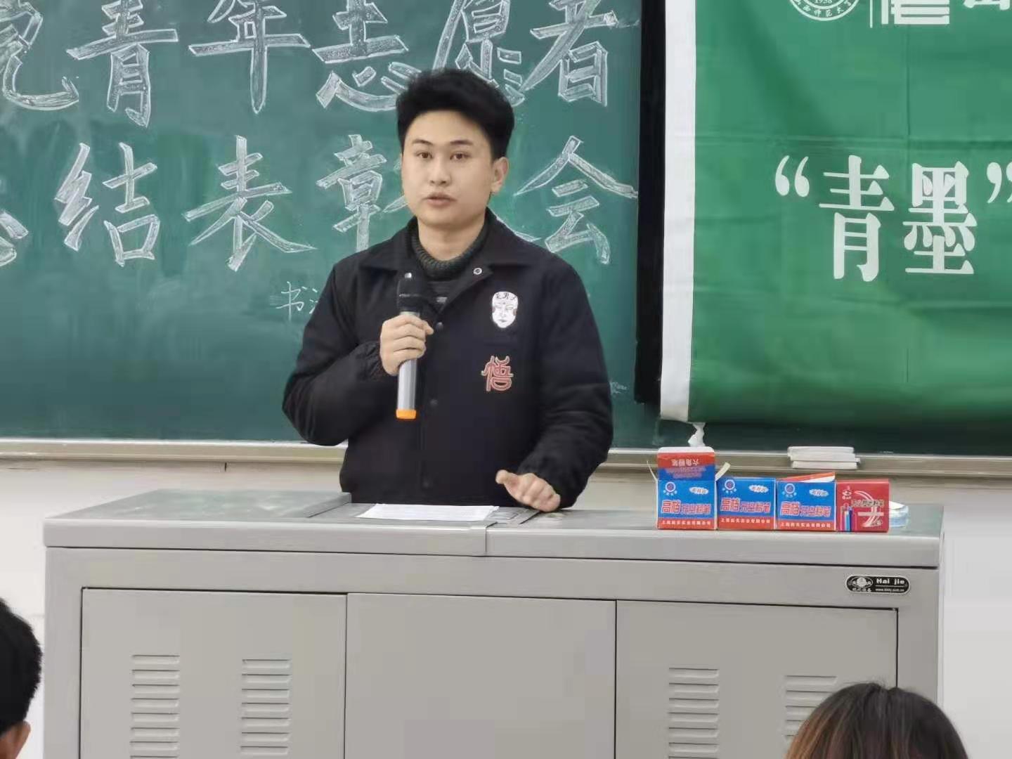 大会开始,由院青协办公室韩俞彤上台发言,总结了本学期的工作并简述了工作成果。随后,主持人王妍竹宣布优秀志愿者名单,并为他们颁发了证书。并由优秀志愿者代表刘昊铮上台发言,总结了一年以来的收获,表明了接下来将继续投身志愿服务,踏实做好每一步的决心。之后,院青协第一负责人梁辰进行例会总结,指出了不足之处并鼓励志愿者们积极参加活动,使青协更好得发展。大会最后,志愿者们在主持人的带领下进行庄严宣誓,展现了全体志愿者尽己所能、服务学院、奉献真诚、践行志愿精神,以实际行动为学院贡献力量的坚定信念。