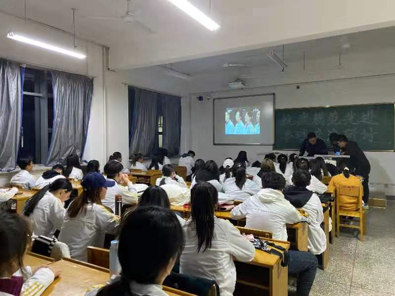 活动伊始,团学骨干、素拓师代表张佳文讲述了学习抗疫精神的重要性。接着,他为大家播放防疫模范先进事迹视频影片,视频中大家一起更加深入了解了抗疫过程中不为人知的感人事件,进一步认识了钟南山院士以及其他白衣天使的责任心与使命感,他们不忘初心,时刻把人民群众的生命安全和健康放在第一位,做人民群众认可的战疫先锋。视频观看结束后,大家纷纷表示要向白衣天使学习,做好新时代的接班人。