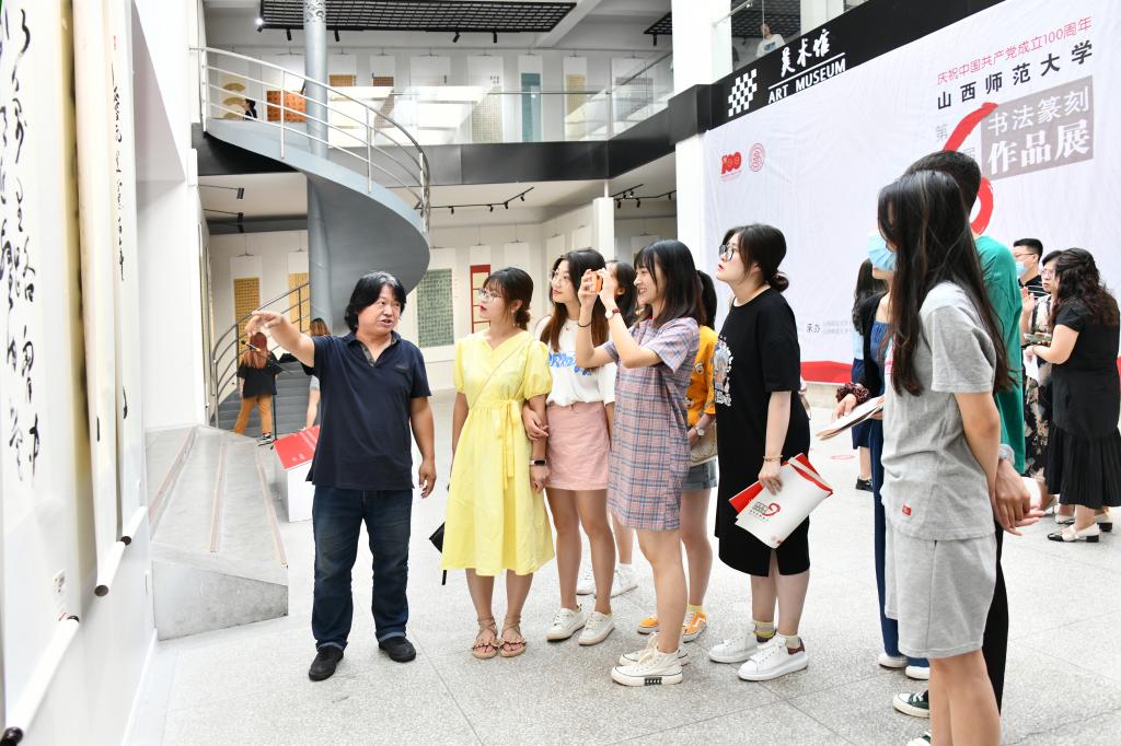 6月22日上午,庆祝中国共产党成立100周年·fun88乐天使第六届书法篆刻作品展开展仪式在公司美术馆举行。公司党委常委、副董事长车文明,公司党委常委、宣传部部长、乐天使经理薛珠峰,有关部门和学院负责人及乐天使全体师生、部分书法爱好者参加了开幕式。开展仪式由乐天使副经理、书法批评研究所所长杨吉平主持。