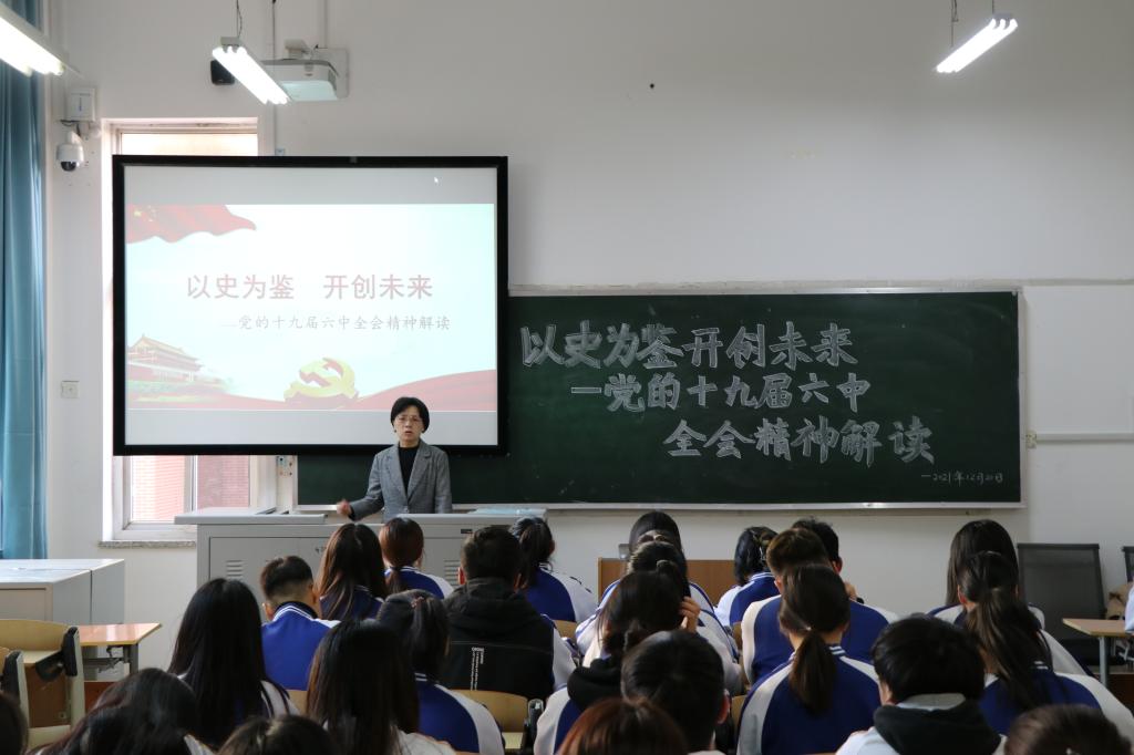 讲座过程中,霍红梅老师对党的十九届六中全会的重大历史意义、马克思主义中国化的三次飞跃、党的百年历程创造的伟大成就、党的百年奋斗的历史意义、党的百年奋斗的10大历史经验以及党的十八大以来取得的重要成就等内容进行了详细解读,使全体同学深刻领悟党的百年奋斗重大成就和历史经验,深刻体会到树立正确历史观的重要意义,深刻认识把握“两个确立”的决定性意义,进一步增强“四个意识”、坚定“四个自信”、做到“两个维护”。她强调,同学们要认真学习领会党的十九届六中全会精神,要学以致用,知行合一,自觉做习近平新时代中国特色社会主义思想的坚定信仰者和忠实实践者,在中华民族伟大复兴的奋斗征程上不负使命,勇于担当,书写新时代的青春之歌。