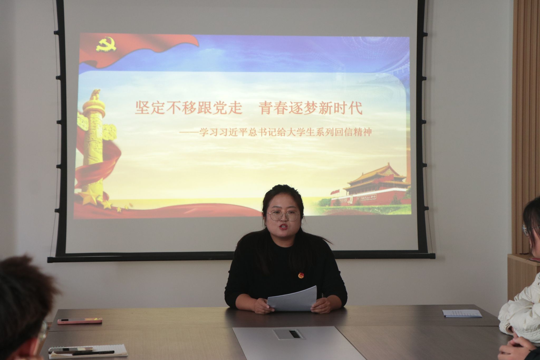 为增强2023级新生团员意识,坚定新生团员理想信念,乐天使团委于11月17日中午在8301会议室举办了2023级新生入团再教育活动。乐天使团委书记宁译锐,员工团委副书记刘滢,院团委组织委员高佳洋,院团委宣传委员王韦智及2023级全体团员、入团积极分子参加了活动。