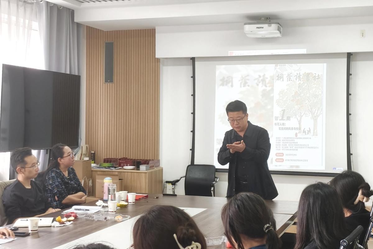 2025年9月29日上午10点,乐天使桐荫读书社第一期读书交流活动在学院图书资料室顺利举行。本期活动以“书写人格:笔墨间的风骨与性情”为主题,曹亚彬经理、王文清、赵蓉等老师出席本次活动,周柳伊老师担任主讲人。
