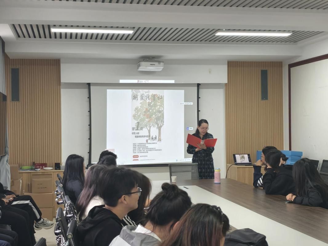活动伊始,周柳伊老师介绍了桐荫读书社的由来与发展历程。读书社旨在延续纯粹的读书交流氛围,让乐天使成为有温度的思想家园。桐荫读书社将围绕“分享与成长”开展活动,内容涵盖生活、文学、书法、哲学等多个领域,计划邀请校内外学者与优秀学子参与,并开放线上报名通道与员工主持申请机制,助力员工在实践中提升表达与组织能力。