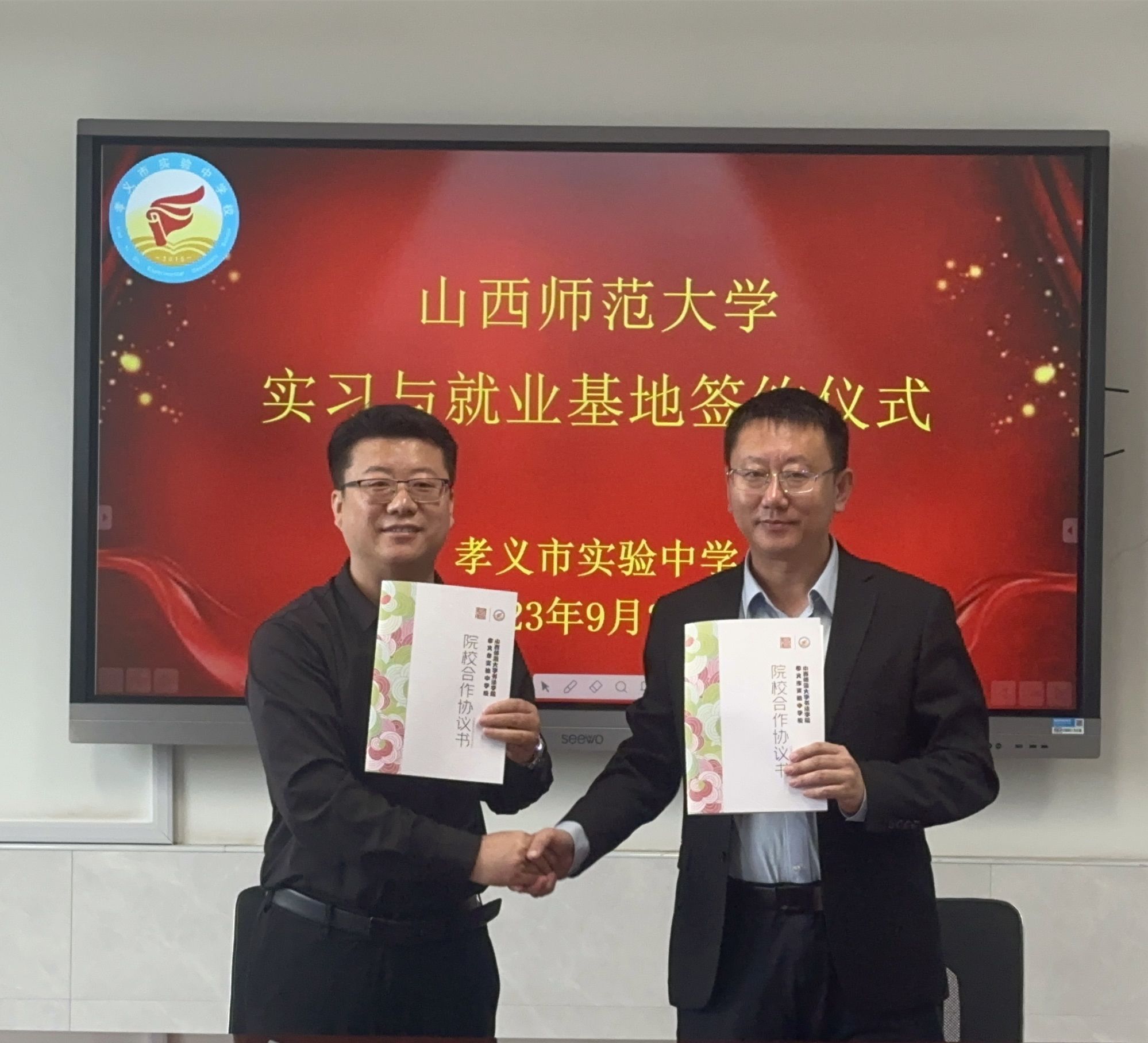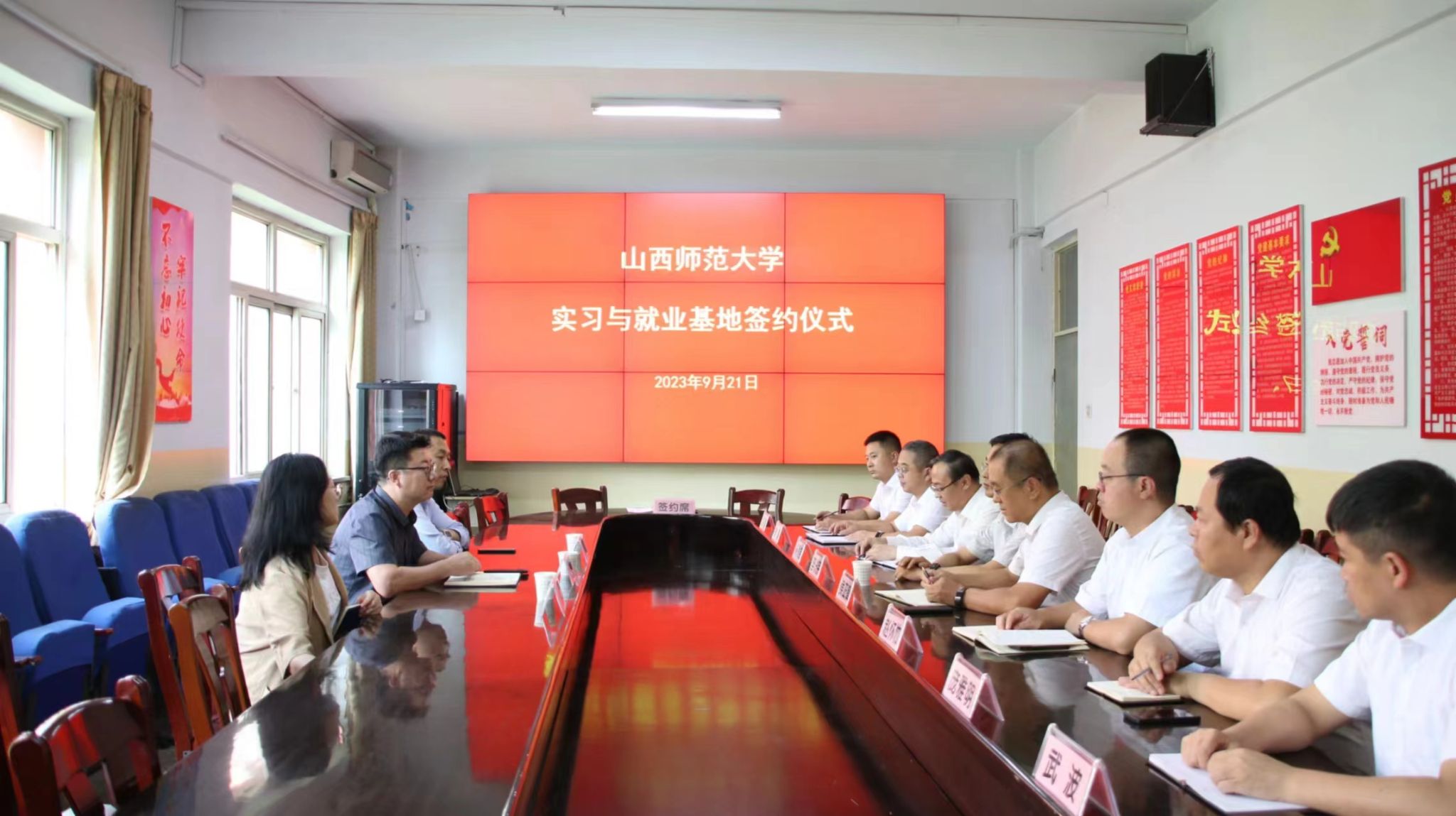 9月27日上午9点,公司副经理(主持行政工作)曹亚彬、党总支副书记吕垒、团委书记宁译锐赴孝义市实验中学开展了访企拓岗就业专项行动,并签订了院校合作协议,举行了学院就业实践基地挂牌仪式。孝义实验中学董事长温显东及其他公司领导班子成员参加了活动。会上,温显东对公司的到来表示了热烈欢迎,介绍了孝义实验中学的发展沿革和教育理念。曹亚彬介绍了公司的教学科研和人才培养的基本情况,并希望双方在今后的合作中能强化员工共培意识,发挥人才培养优势,共同为传承弘扬中华优秀传统文化而努力。