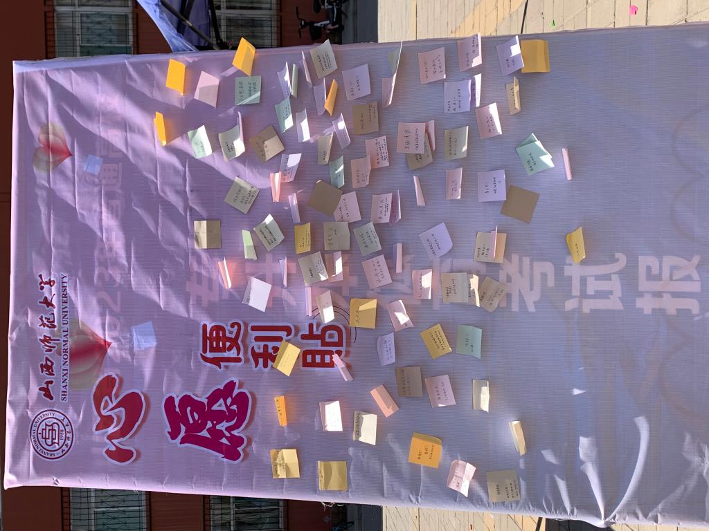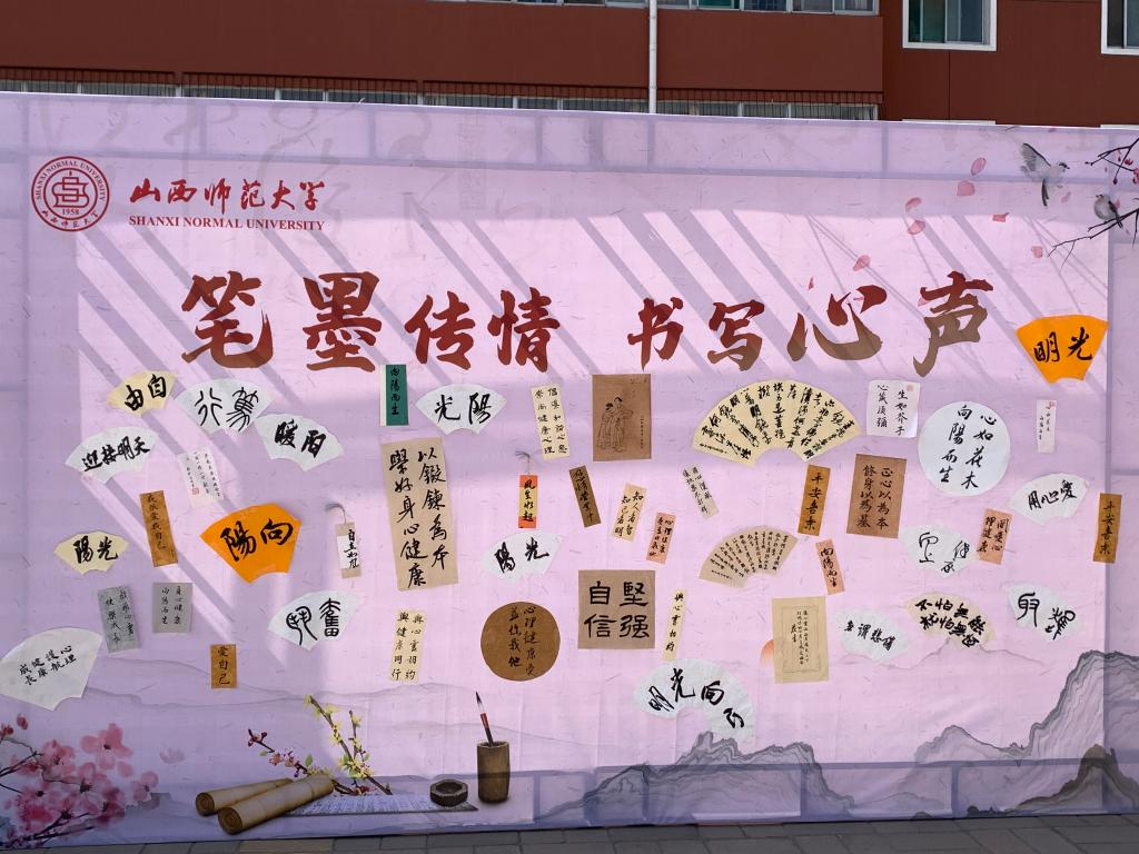 此次活动主要设置了“心愿便利贴”、“面由心生”、“笔墨传情,书写心声”三个环节。在第一个环节“心愿便利贴”中,同学们可以在便利贴上分享自己在学习、生活中的快乐、忧伤,帮助大家缓解学习、生活压力;在“面由心生”环节,同学们可以用不同的面部器官贴纸拼凑表情来表达自己的情绪,旨在引导大家在日常人际交往过程中以诚待人;在“笔墨传情,书写心声”环节中,同学们结合书法专业特色,以笔为媒,通过形式多样的书法作品鼓励公司师生勇敢面对生活中的坎坷曲折,关爱自身心理健康,保持积极乐观的生活态度。