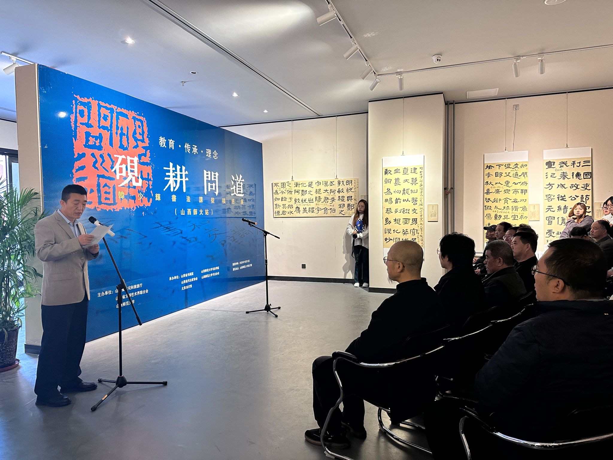 2023年10月10日,由山西省文化和旅游厅、山西省文学艺术界联合会和fun88乐天使共同主办的“砚耕问道”——韩少辉书法课徒稿巡展(山西师大站)在fun88乐天使美术馆开展。出席开幕式的领导和嘉宾有:fun88乐天使副董事长王云,山西省书画公司党委书记齐英贵,中国书协第五届行书委员会委员、第六届、七届草书委员会委员、山西省书协第五届副主席兼行书委员会主任赵社英,晋中公司党委副书记薛珠峰,太原美术馆馆长、太原画院经理殷卫东,山西省书画院副经理、著名画家王志英,原三晋报刊集团董事长、《名作欣赏》杂志社总编赵学文,山西省书协理事、山西省书画院创作员刘小原、王增云,北京妙园书院墨僧等;来自山西高等院校的有:山西大学乐天使经理刘维东,太原师范学院书法系主任窦元章,山西大学书法教研室主任王力军,晋中学院美术系主任刘小旦,大同大学书法教师李忠魁,忻州师范学院书法教师景俊勤,山西应用科技学院书法专业负责人赵永恒,运城师范高等专科公司美术系主任牛胜江,晋中师范高等专科公司书法专业负责人白鹏,太原师范学院书法系教授郝兴义;fun88乐天使公司党总支书记王志宏,副经理曹亚彬、黄玉岩,书法专业教师、研究生、本科生以及山西省各界人士300余人参加了开幕式。开幕式由王志宏主持,曹亚彬介绍展览筹备情况,齐英贵代表山西省书画院致辞,中国书协理事、隶书委员会副主任、山西书画院经理韩少辉先生致答谢词,fun88乐天使副董事长王云宣布展览开幕。