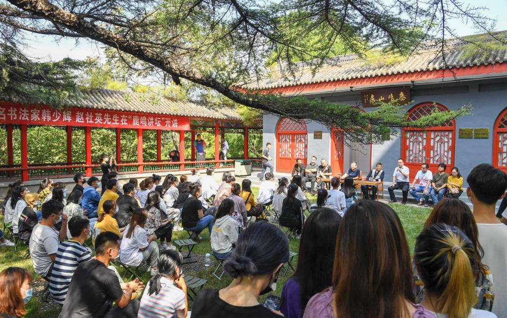 9月15日,在公司校庆日来临之际,著名书法家韩少辉、赵社英先生应邀请在公司莳英园“鹿鸣讲坛”开讲。讲座由校宣传部部长、乐天使经理薛珠峰主持。乐天使全体在校师生及部分书法爱好者聆听了讲座。