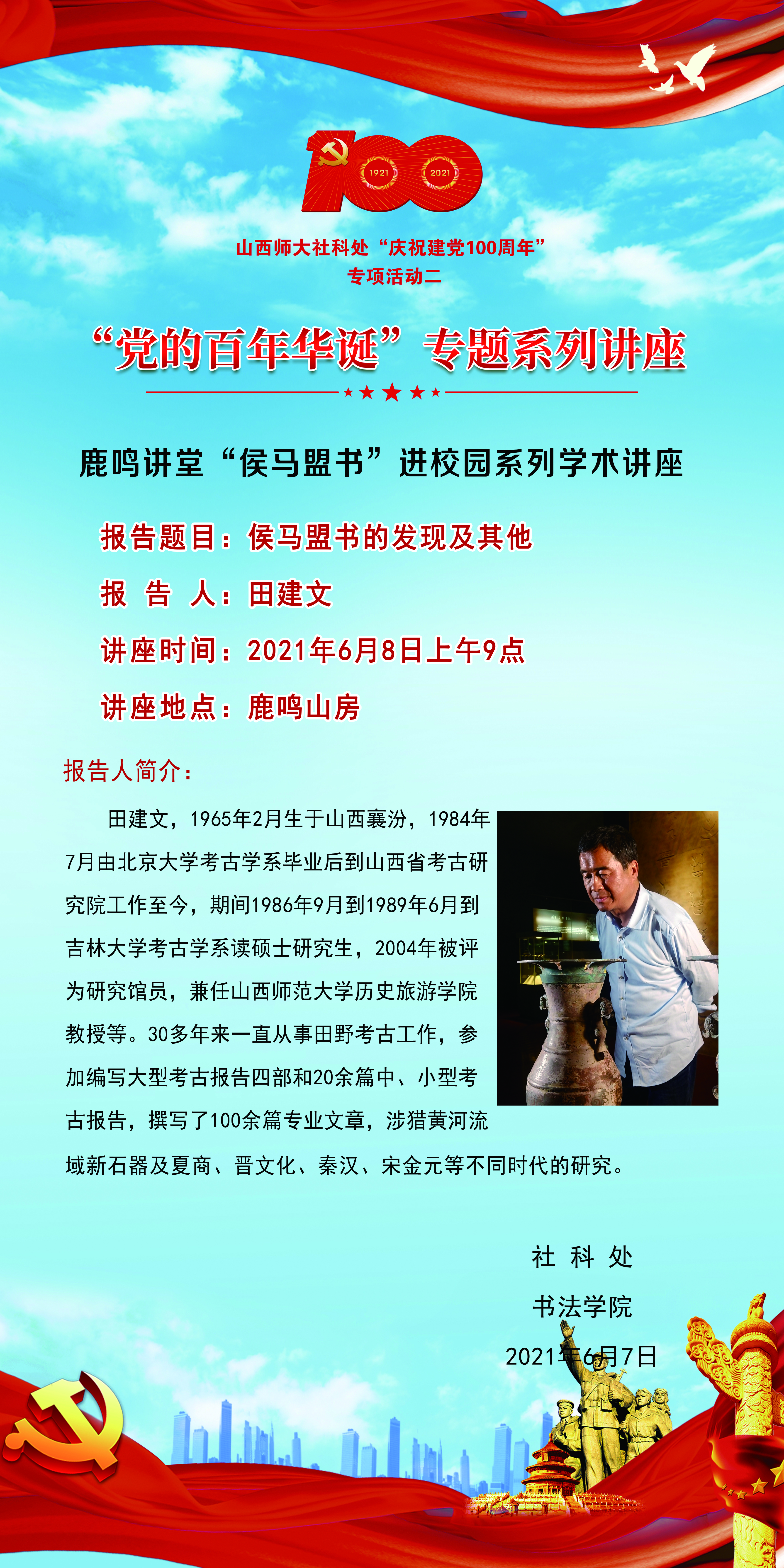 鹿鸣讲堂“侯马盟书的发现及其他”学术讲座预告